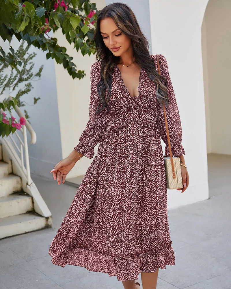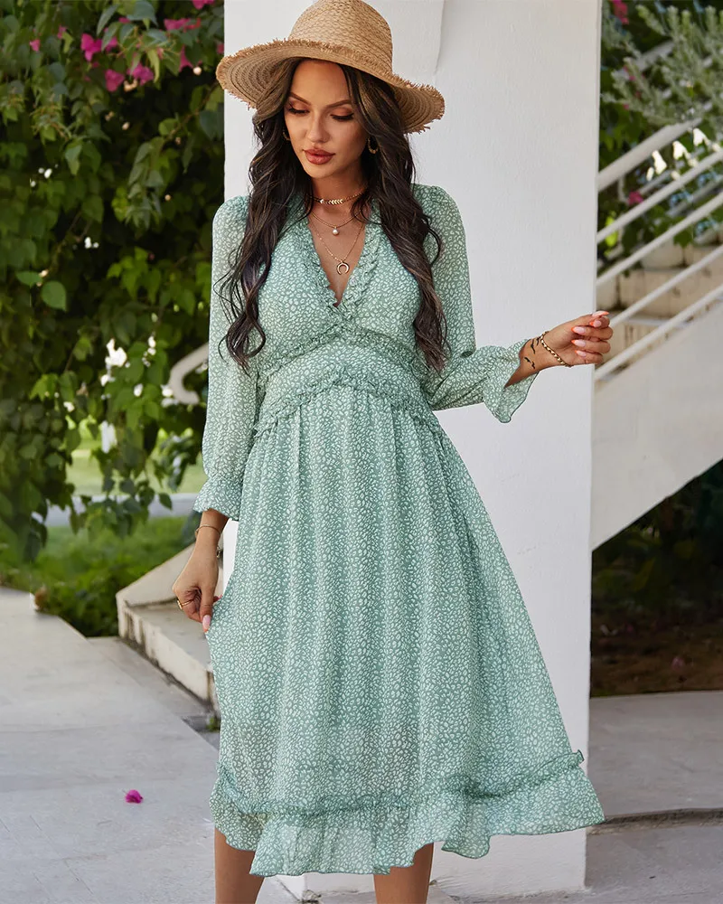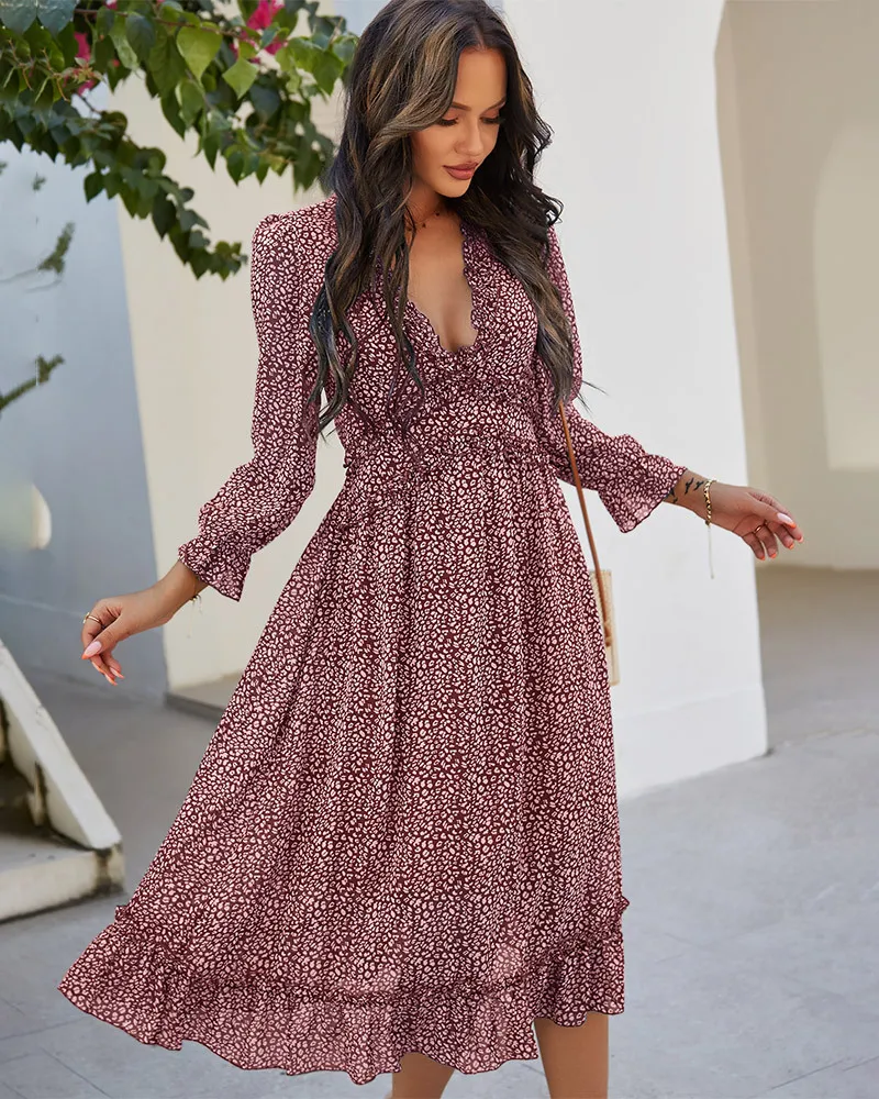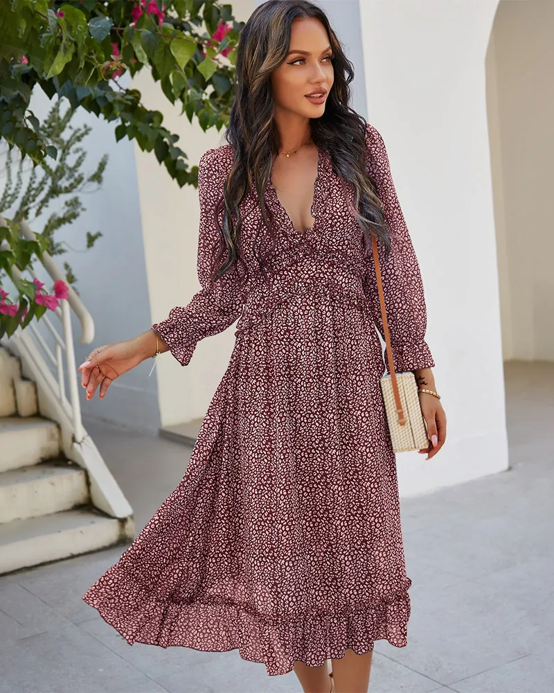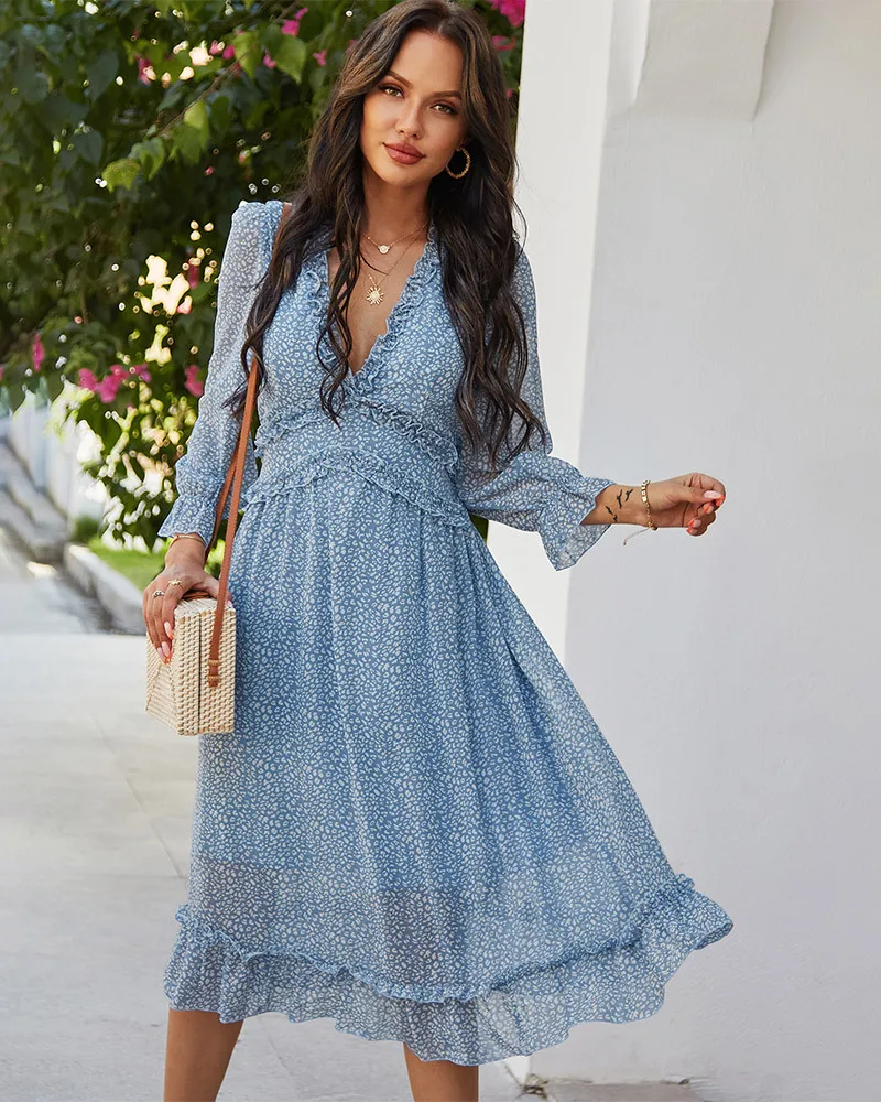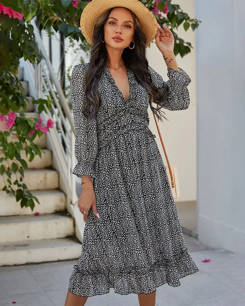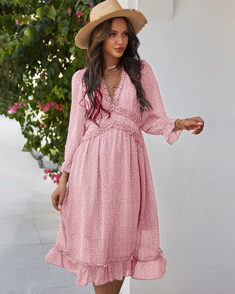 DressBetty - 2023 Spring And Summer Popular V-neck Simple Printed Dress