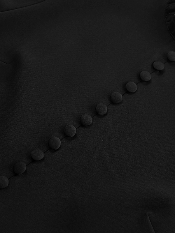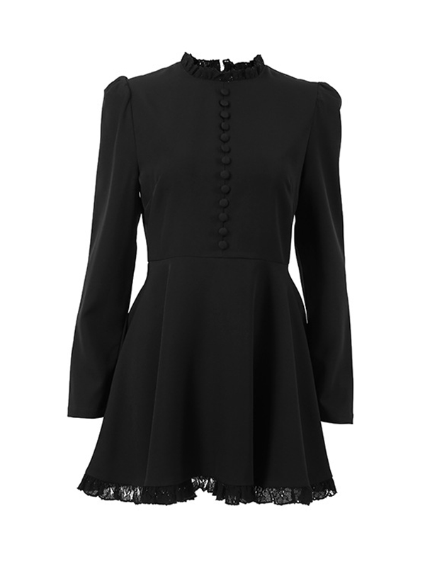 A-Line High Waisted Buttoned Solid Color Zipper Round-Neck Mini Dresses