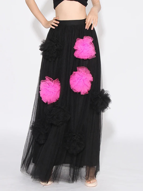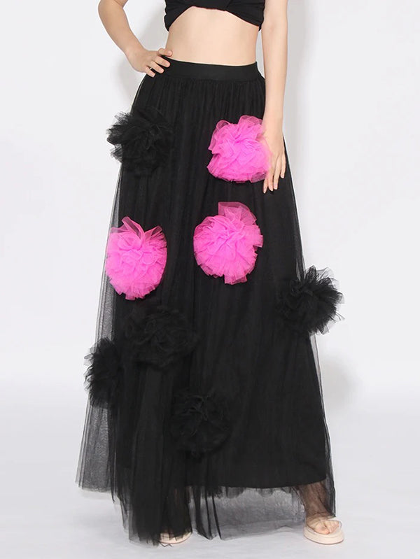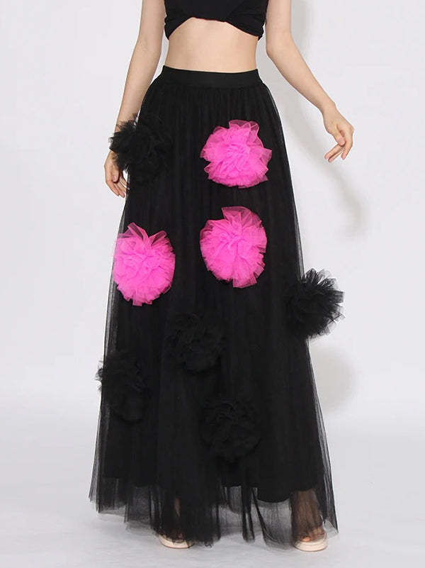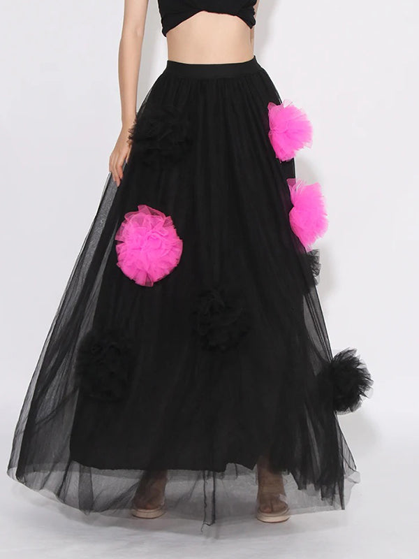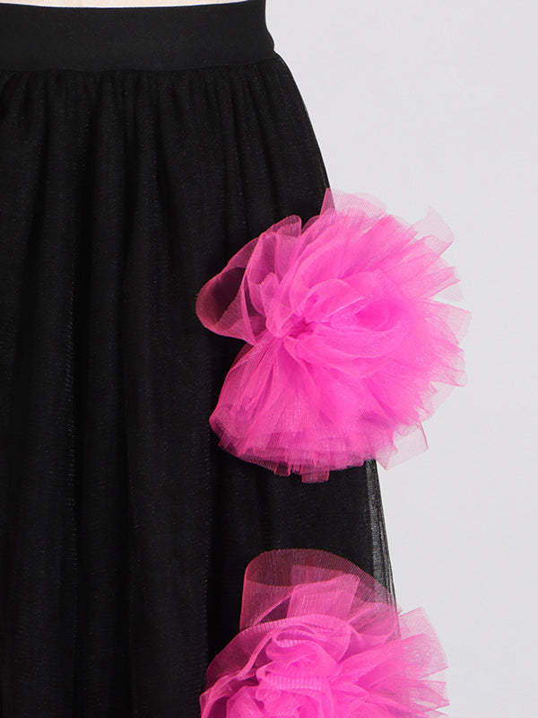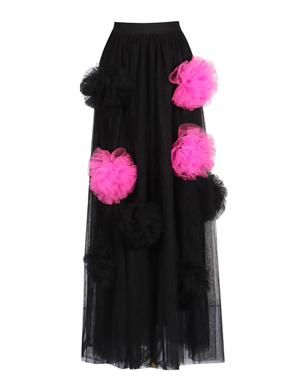 Feature:See-Through,Split-Joint,Contrast Color,Three-Dimensional Flower,Tulle