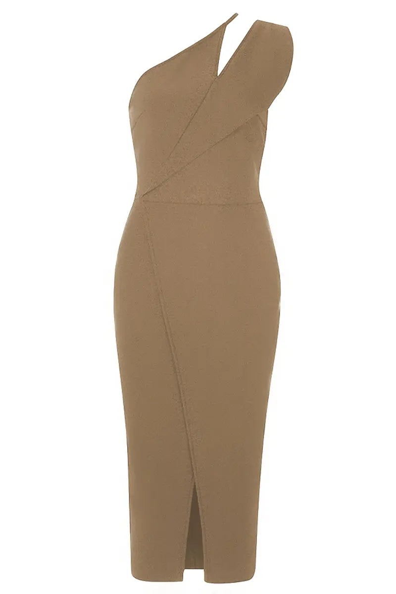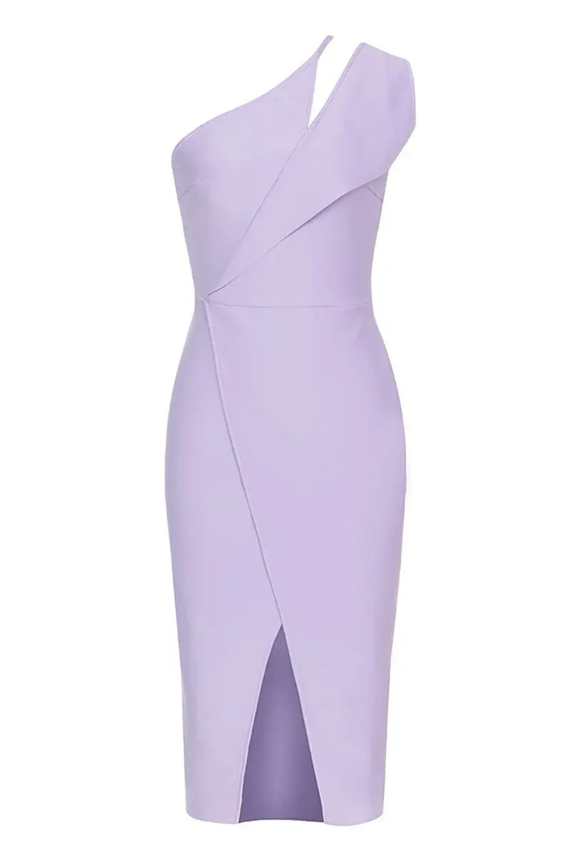 Make a statement with this asymmetrical bandage dress that combines contemporary elegance with a bold design. Featuring a one-shoulder silhouette and sleek panel detailing, this dress is designed to enhance your natural curves while exuding sophistication.
