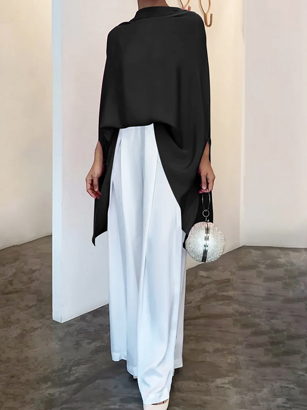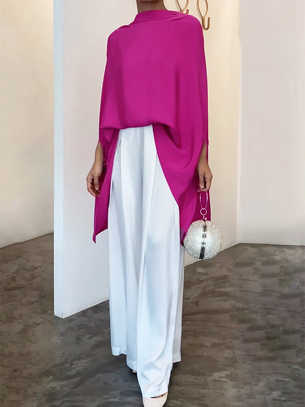 Batwing Sleeves Loose Solid Color High-Neck T-Shirts Tops