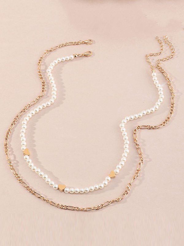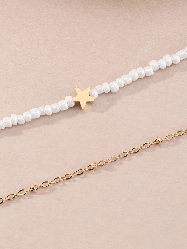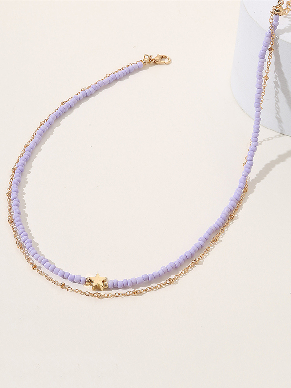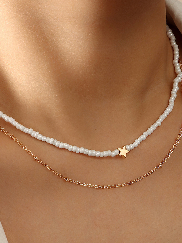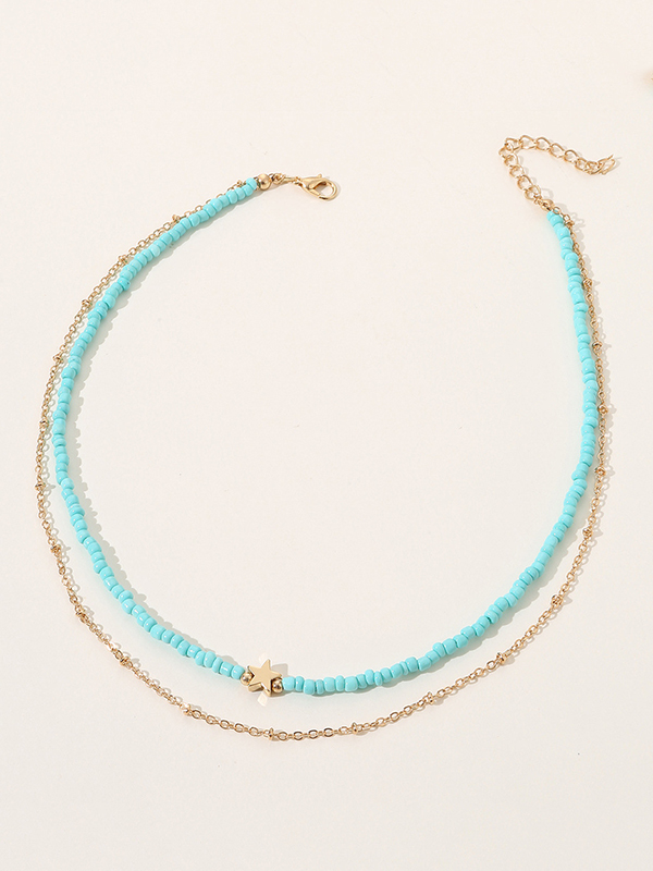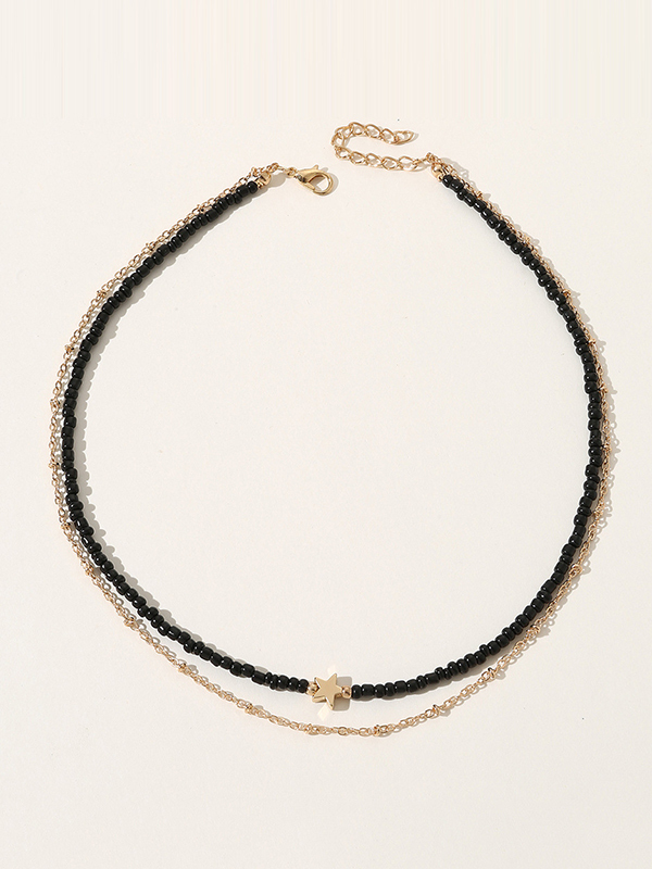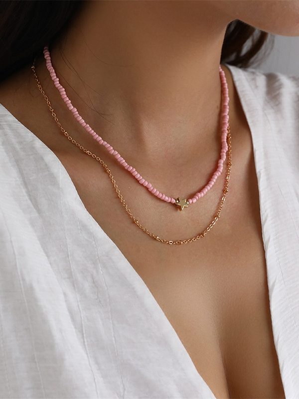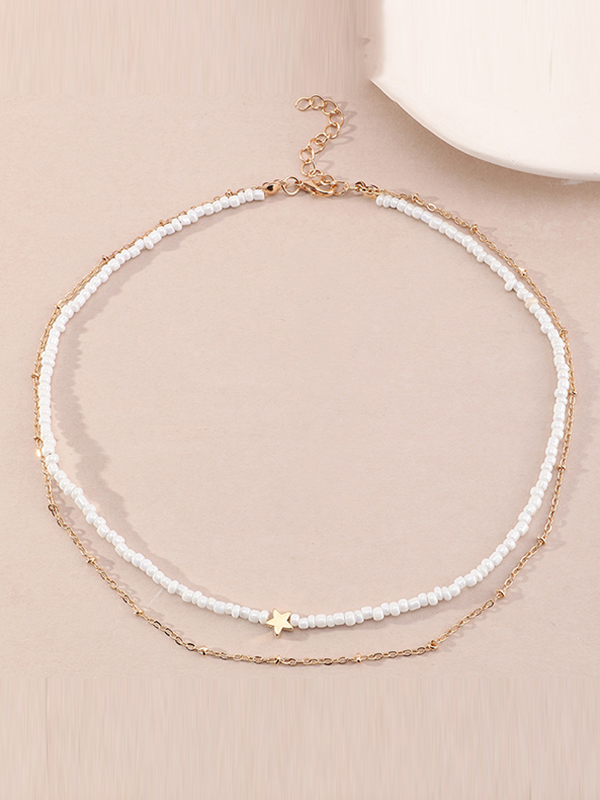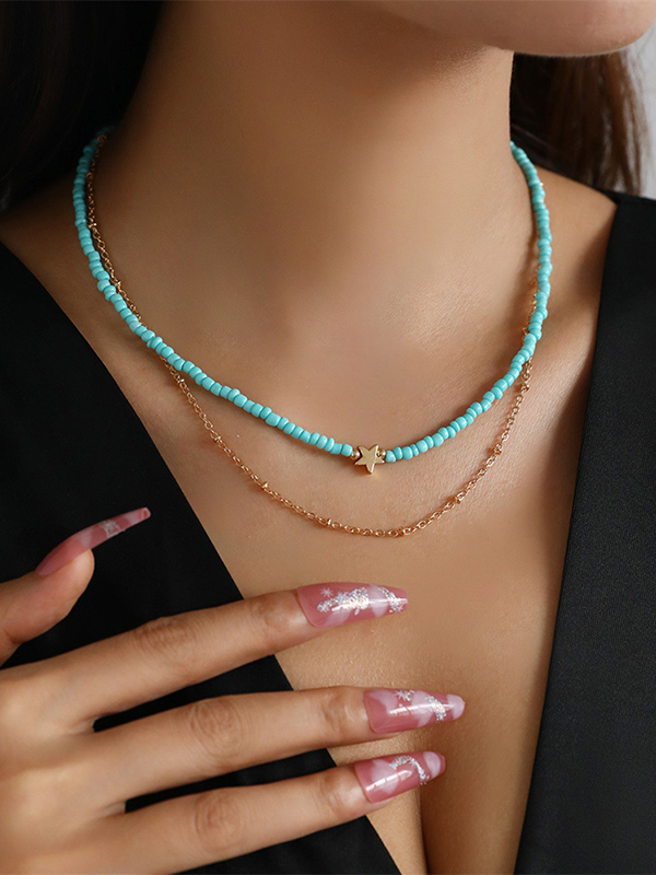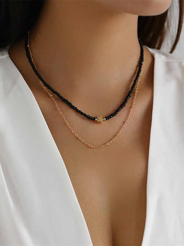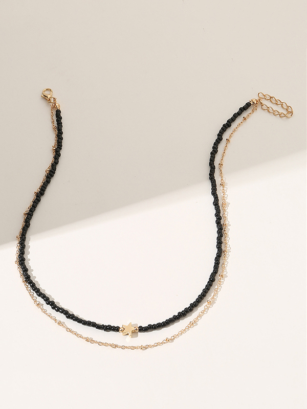 Beaded Chains Contrast Color Double Layered Dainty Necklace Necklaces Accessories