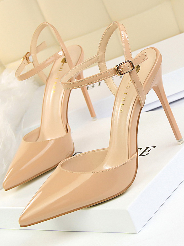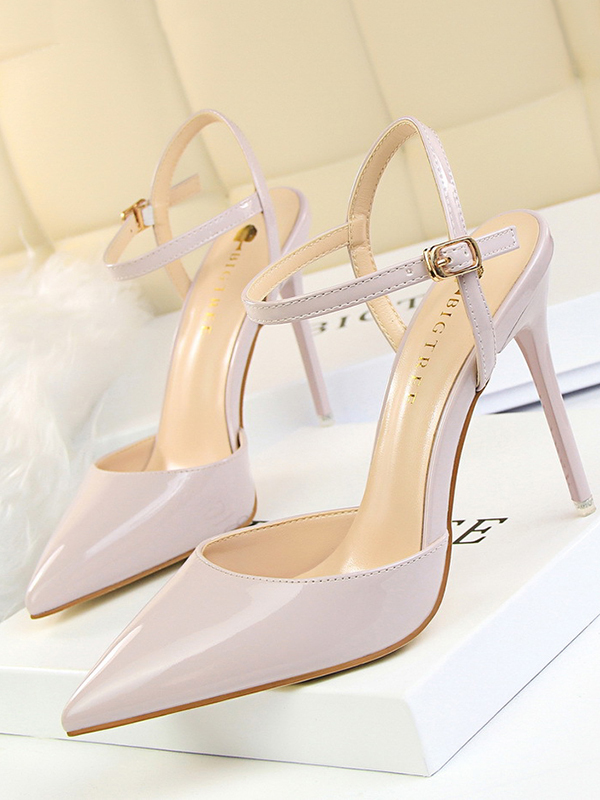 Belt Buckle Pointed-Toe Shiny Split-Joint Pumps Sandals