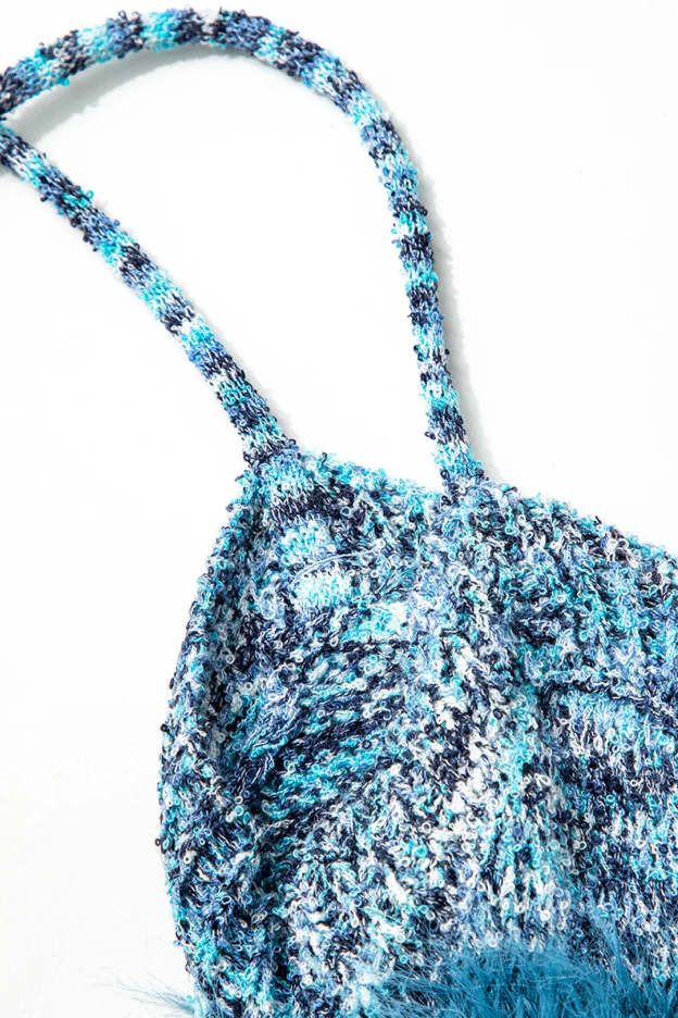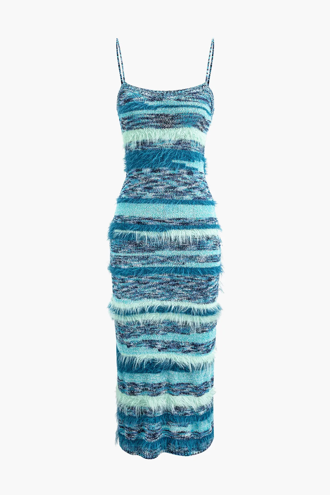 Berlin Blue Feather Stripe Knit Maxi Dress