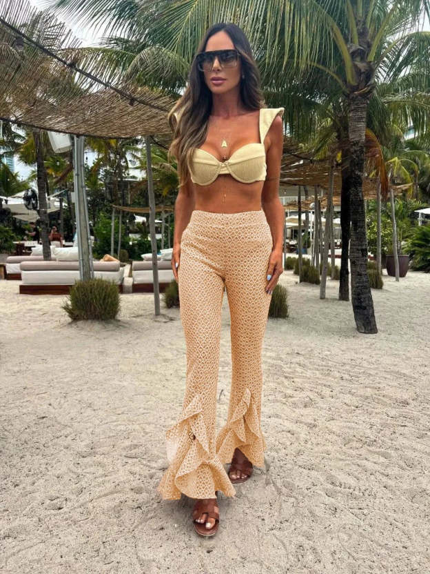 Bikini Cover Up Pants Knot Bandage Three Piece Swim Sets