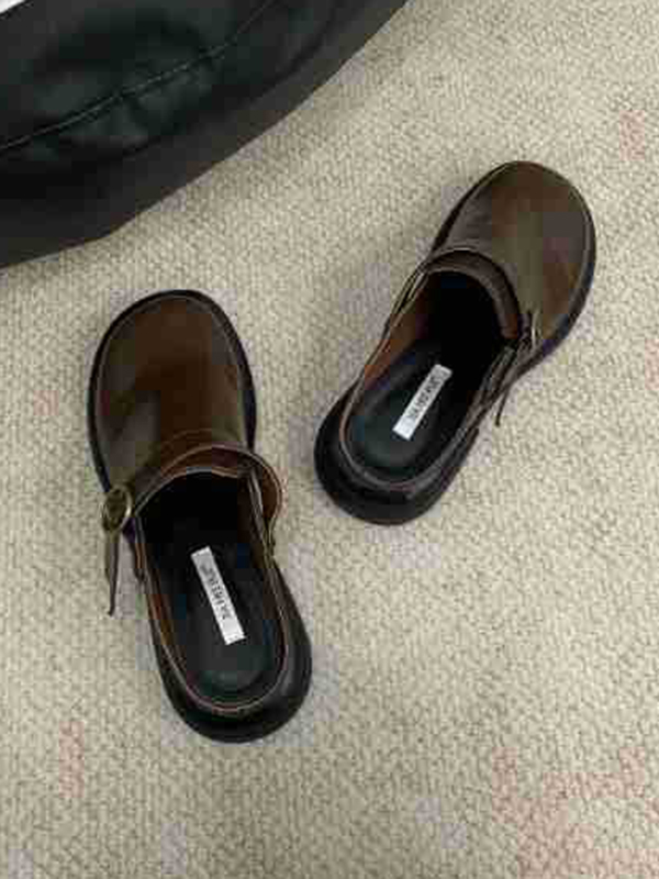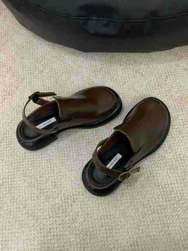 Buckle Round-Toe Split-Joint Loafers Mules&Slides Sandals