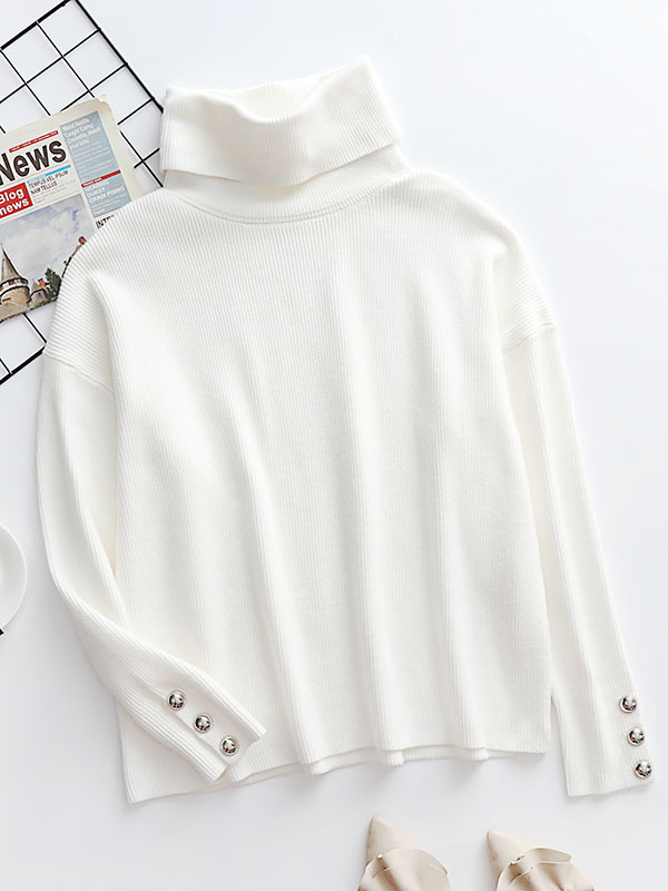 Casual Loose Solid Color High-Neck Long Sleeves Knitwear