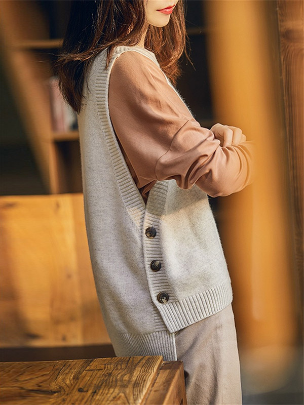 Casual Sleeveless Loose Solid Color Round-Neck Knitting Vest Outerwear