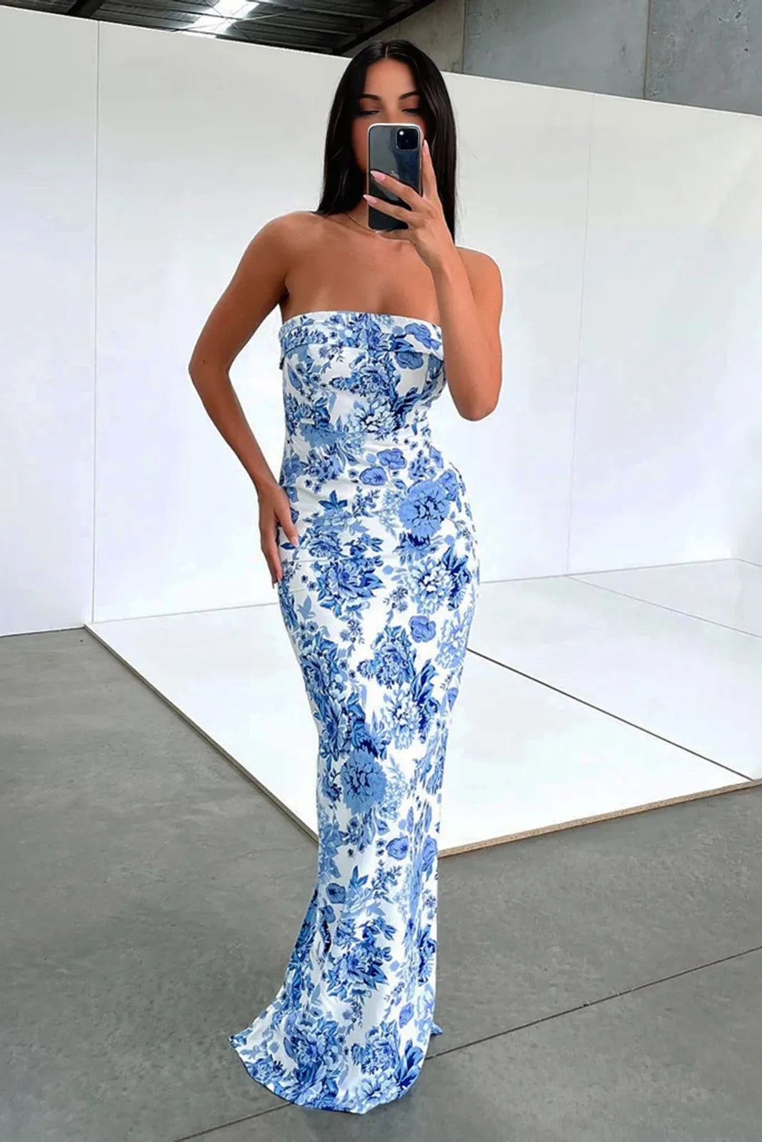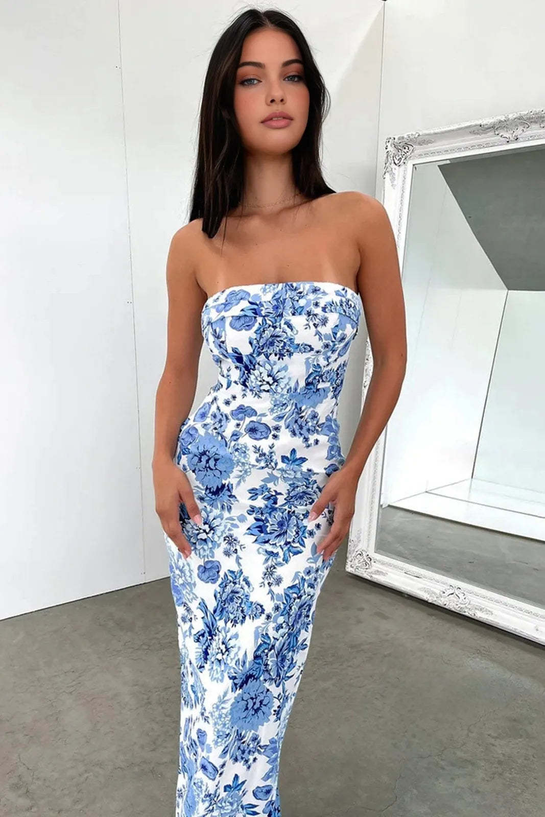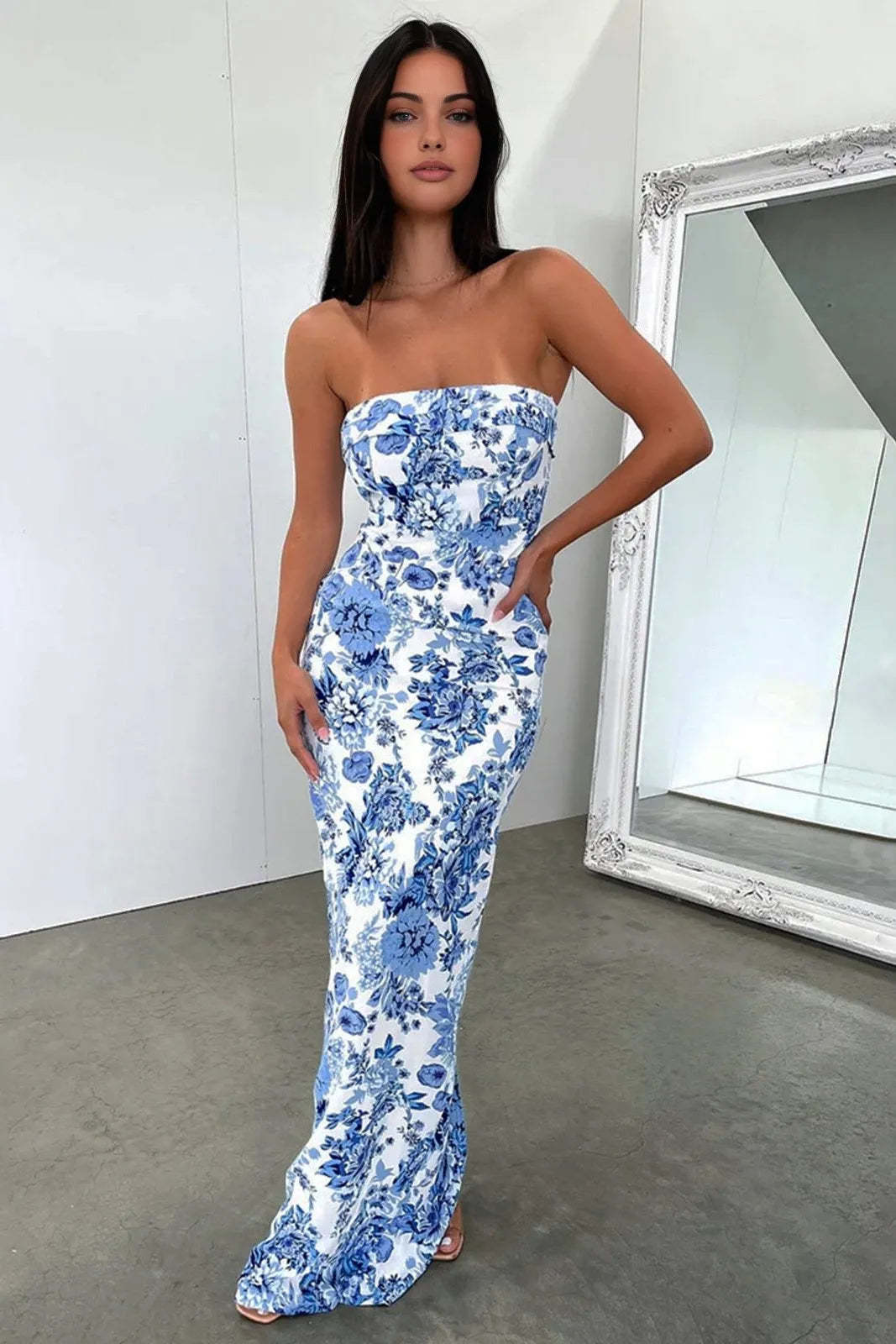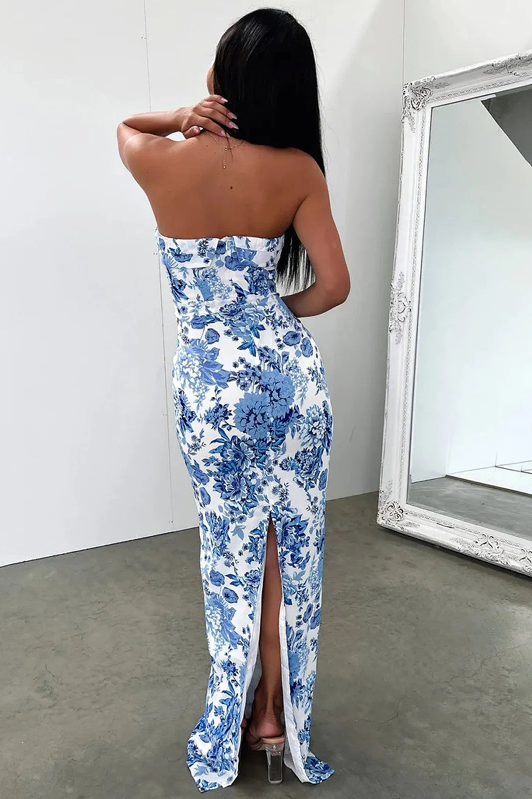 Cerise Multi Flora Off Shoulder Split Maxi Dress