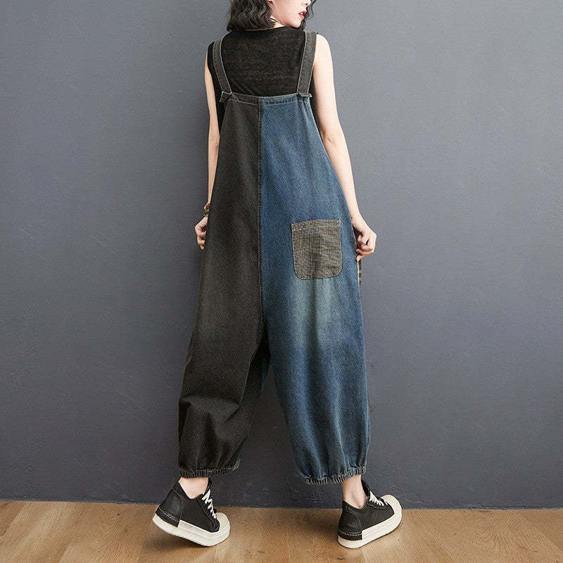 Stay on trend with these Color Block Patchwork Distressed Denim Overalls. Featuring a unique mix of colors and a distressed finish, these overalls are perfect for adding a playful touch to your outfit. Made from high-quality denim, they are both stylish and durable. Pair them with a simple top