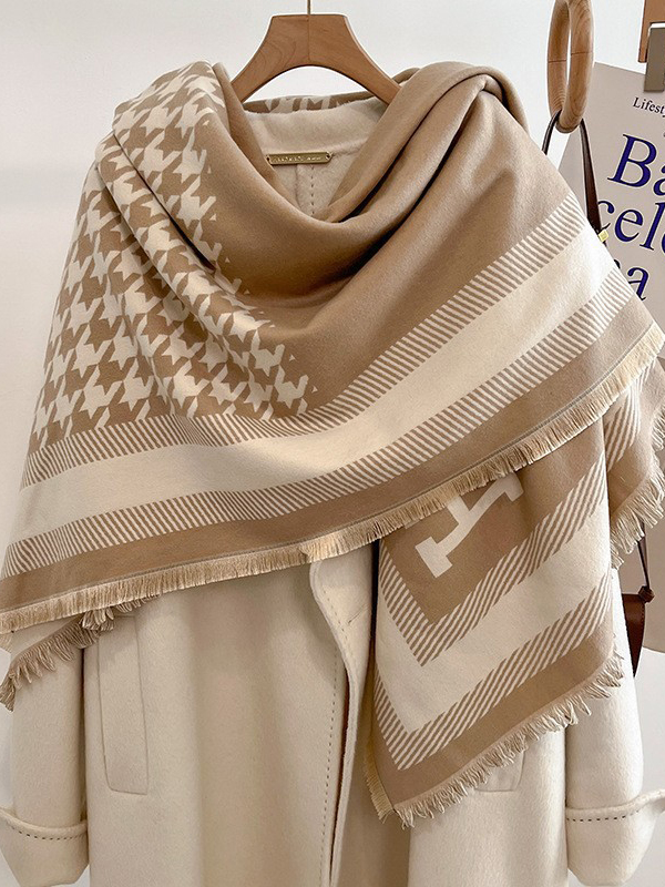 FeatureKeep Warm , Fringed , Houndstooth , Contrast Color , Printed , Striped