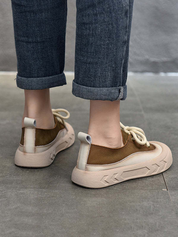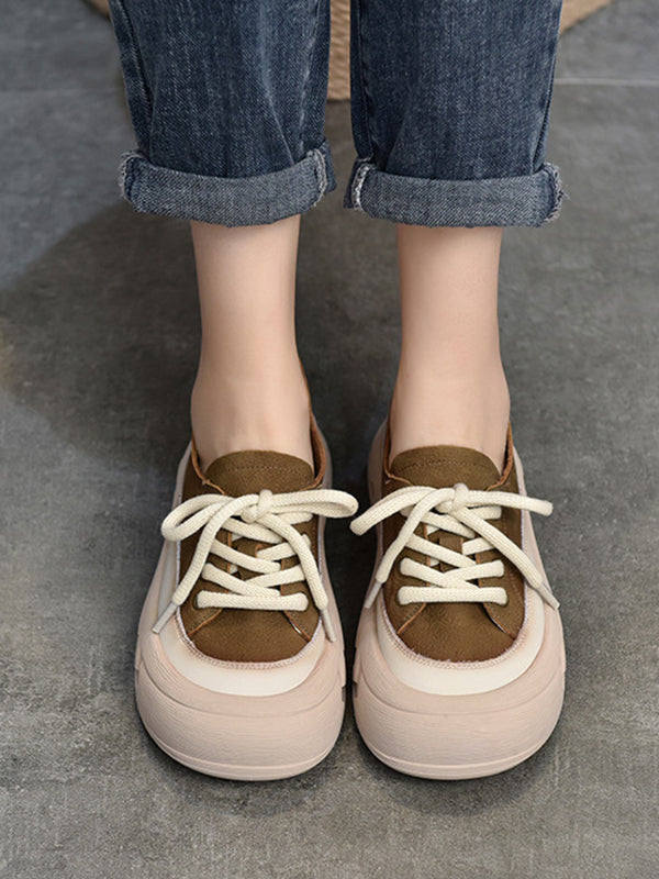 Contrast Color Lace-Up Casual Shoes Platform Shoes