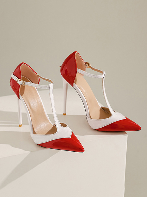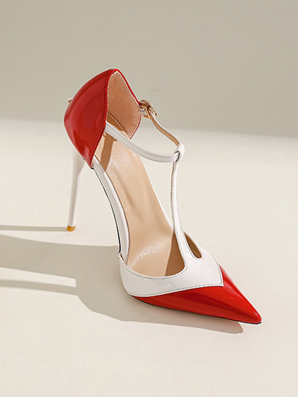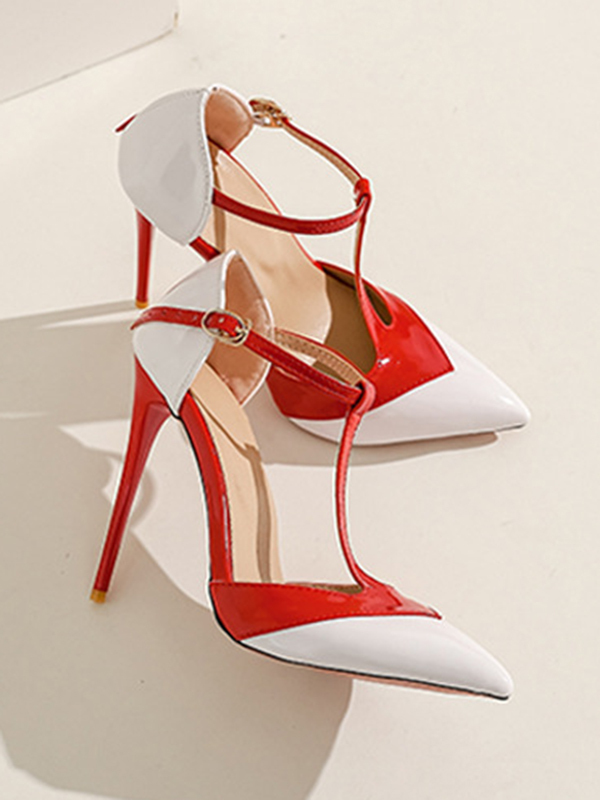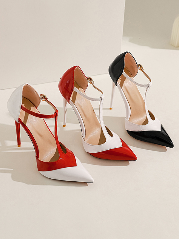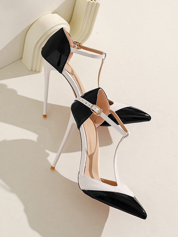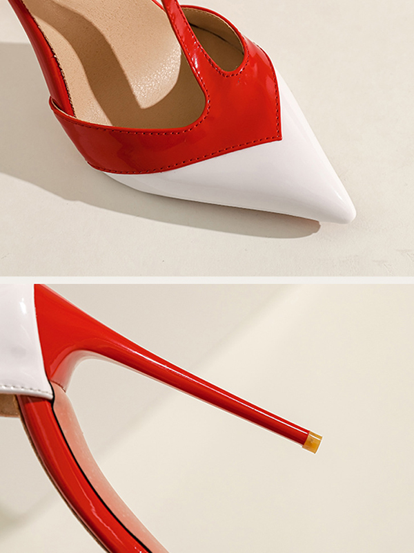 Contrast Color Pointed-Toe Split-Joint Pumps Sandals