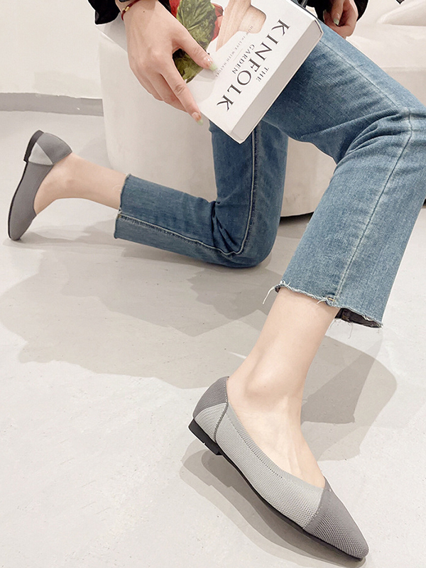 Contrast Color Pointed-Toe Split-Joint V-Cut Flat Shoes Flats