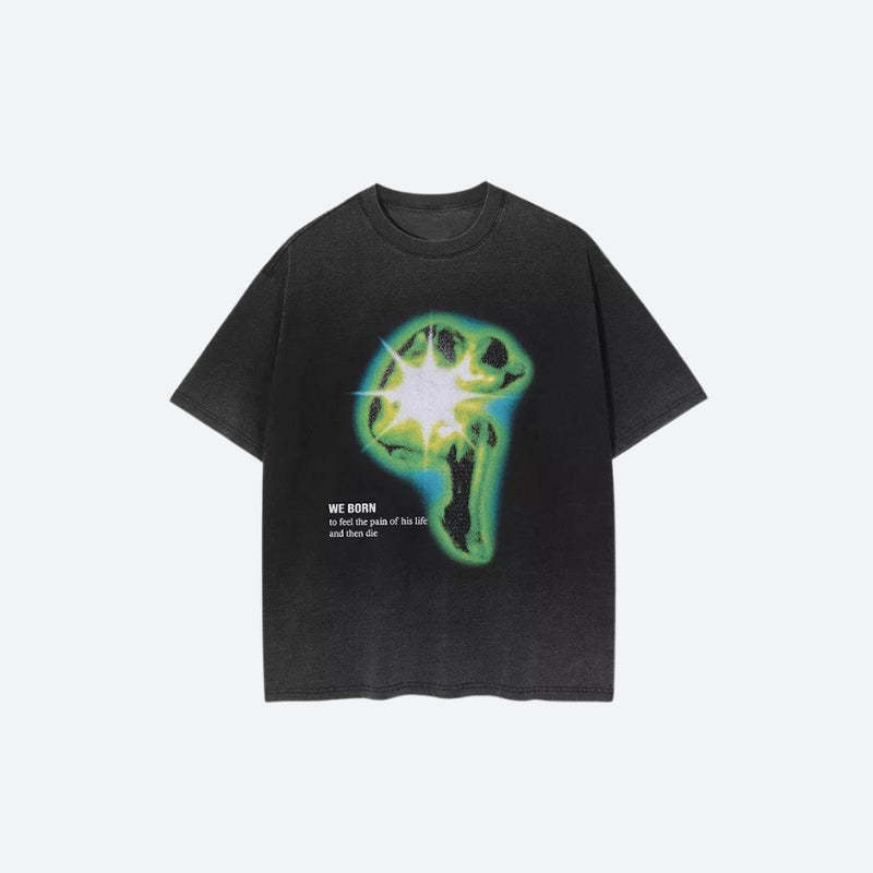 This unique tee showcases a green and blue human aura print, perfect for those who appreciate a touch of the extraordinary. Its short sleeves and unisex design make it a versatile addition to any casual, cozy, or streetwear summer collection.