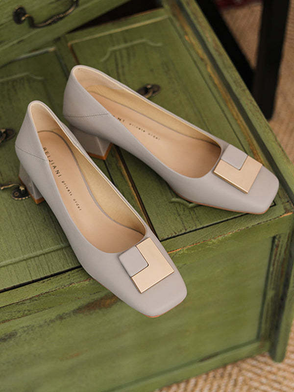 Elegant Square Buckle Chunky Square Mid Heel Shoes