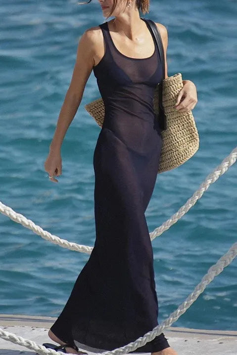 Ella Blue Mesh Sleeveless Maxi Dress