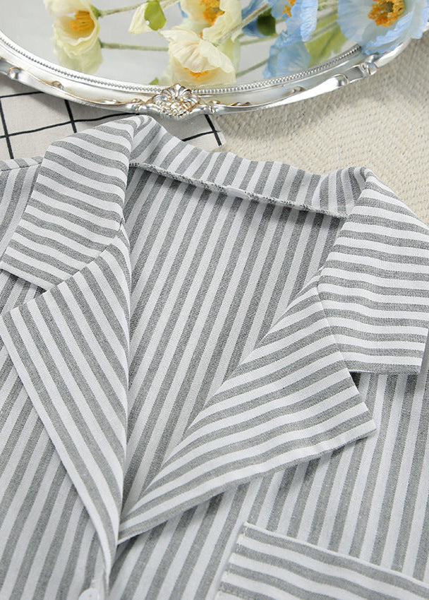 Emilia - Striped Cotton Pajama Set offers timeless comfort with a classic design. Crafted from breathable, soft cotton, this two-piece set features a relaxed-fit button-up shirt with a notched collar and a chest pocket, paired with high-waisted straight-leg pants for effortless ease. The subtle striped pattern adds a touch of sophistication, making it perfect for cozy nights, lounging in style, or slow weekend mornings.