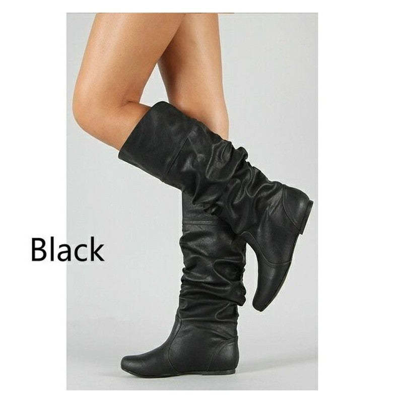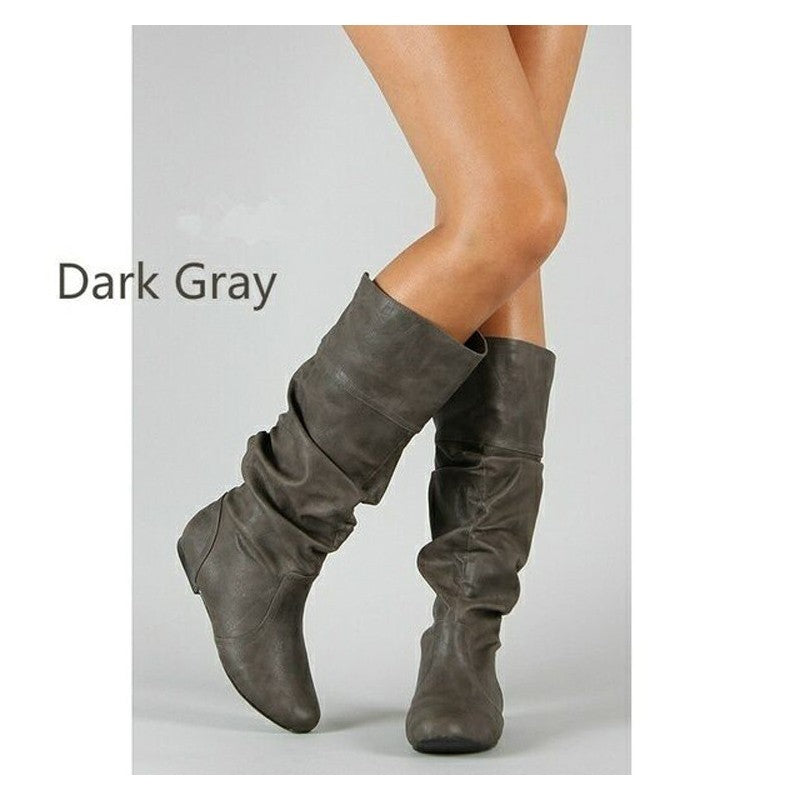 Fashionable Increased PU Round Toe Flat Boots