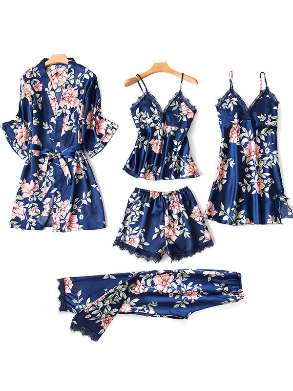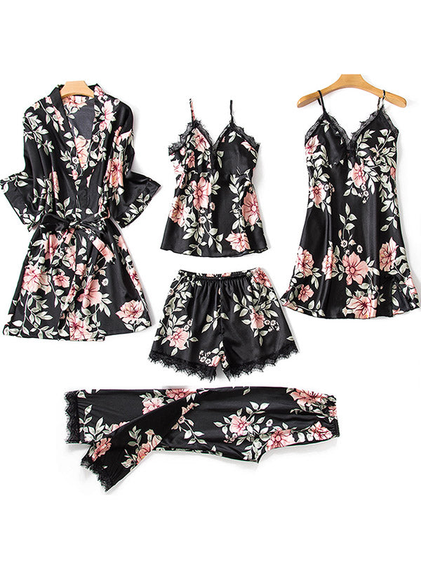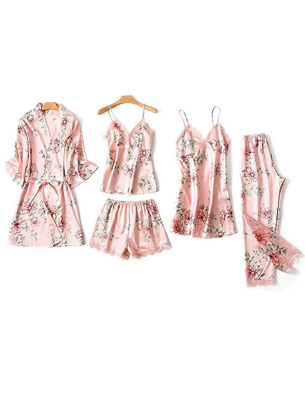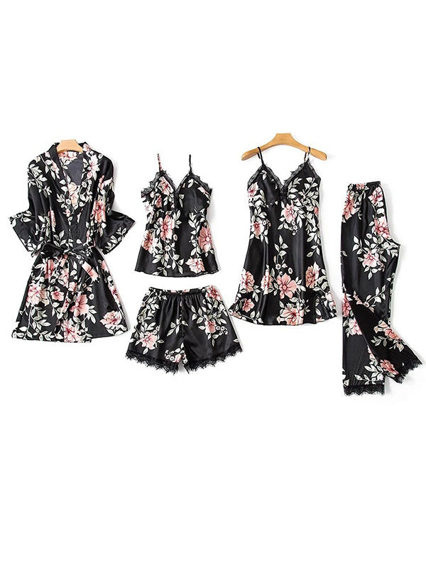 Five Pieces Thin Floral Pajama Set