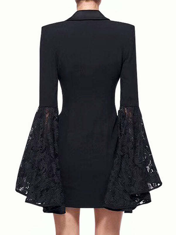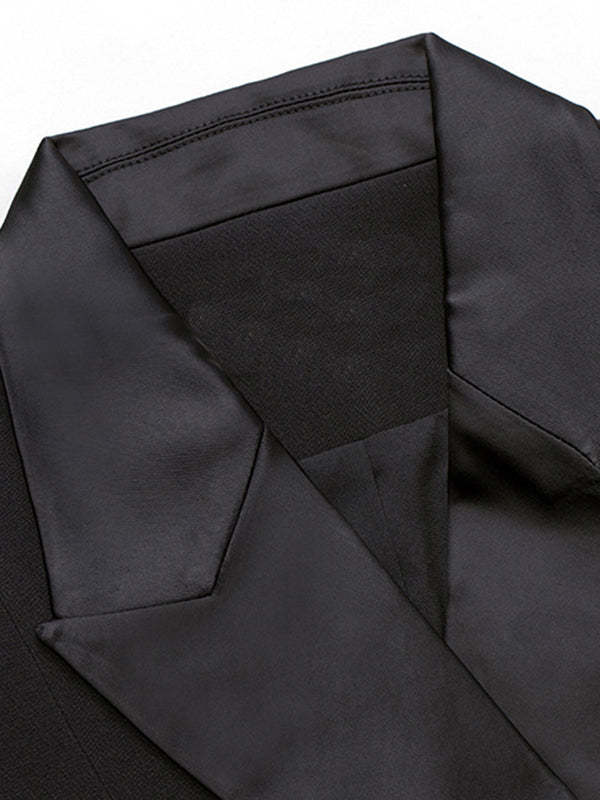 Flared Sleeves Long Sleeves Asymmetric Buttoned Solid Color Split-Joint Notched Collar Blazer Outerwear