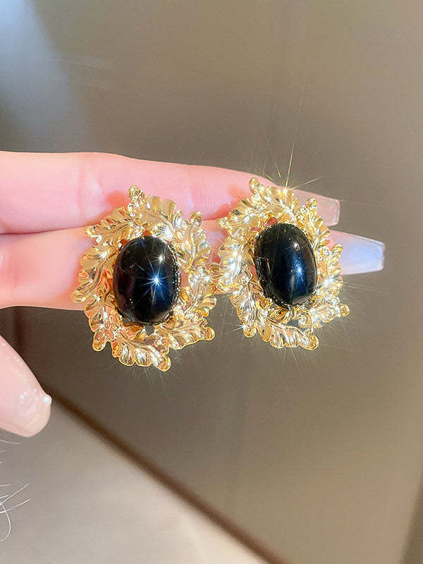 Flower Shape Geometric Rhine Stones Earrings Accessories