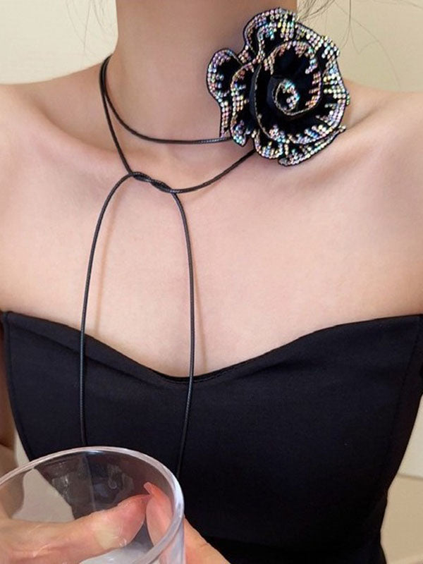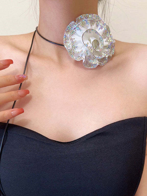 Flower Shape Rhine Stones Necklaces Accessories