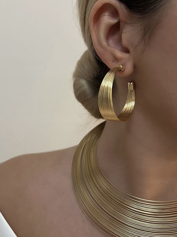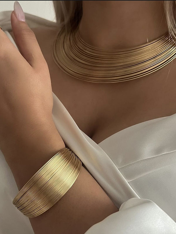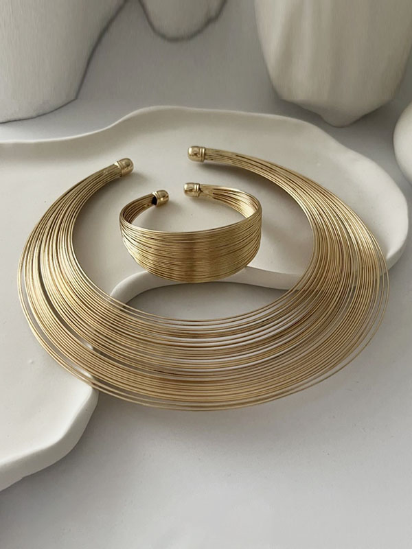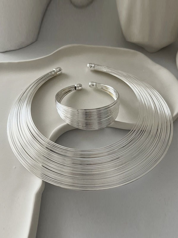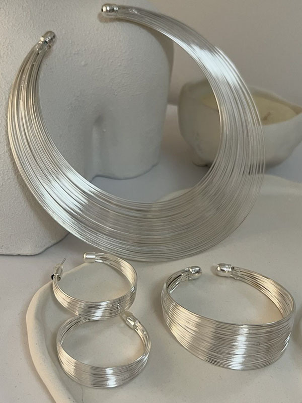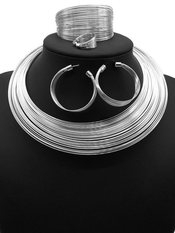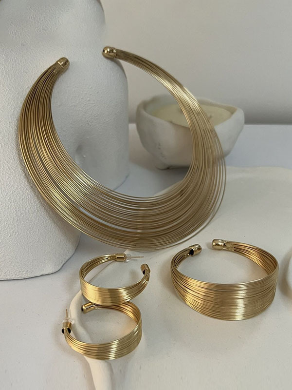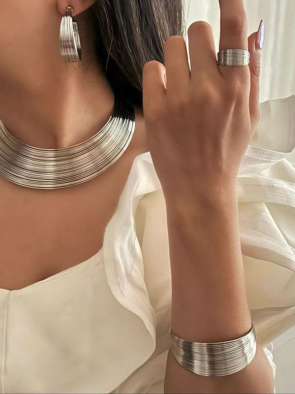 Geometric Solid Color Bracelet + Earrings + Necklaces + Rings Accessories Five Pieces Sets
