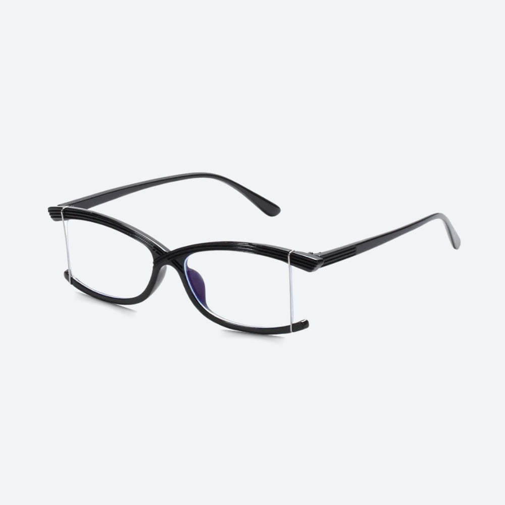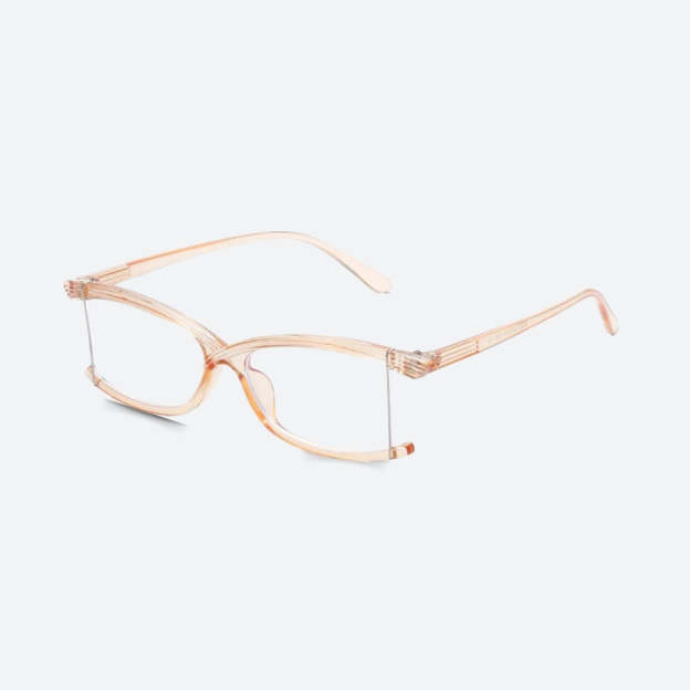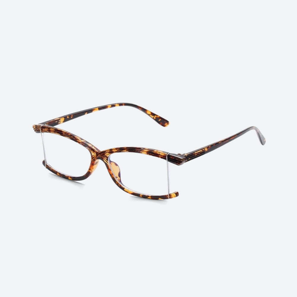 Envision an outfit adorned with these half-frame spectacles as a chic statement piece. The tortoiseshell pattern brings a touch of classic flair, while the structured design offers a modern twist to eyewear. Perfect for adding a dash of sophistication to any ensemble.