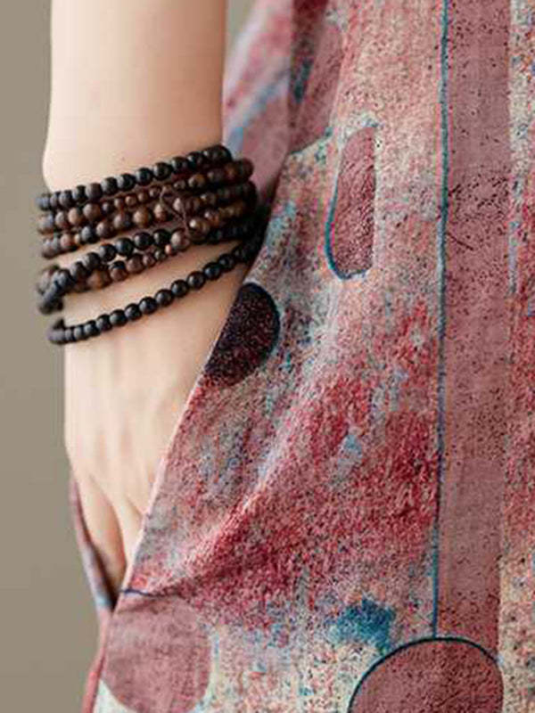 Half Sleeves Loose Contrast Color Polka-Dot Printed Round-Neck Midi Dresses
