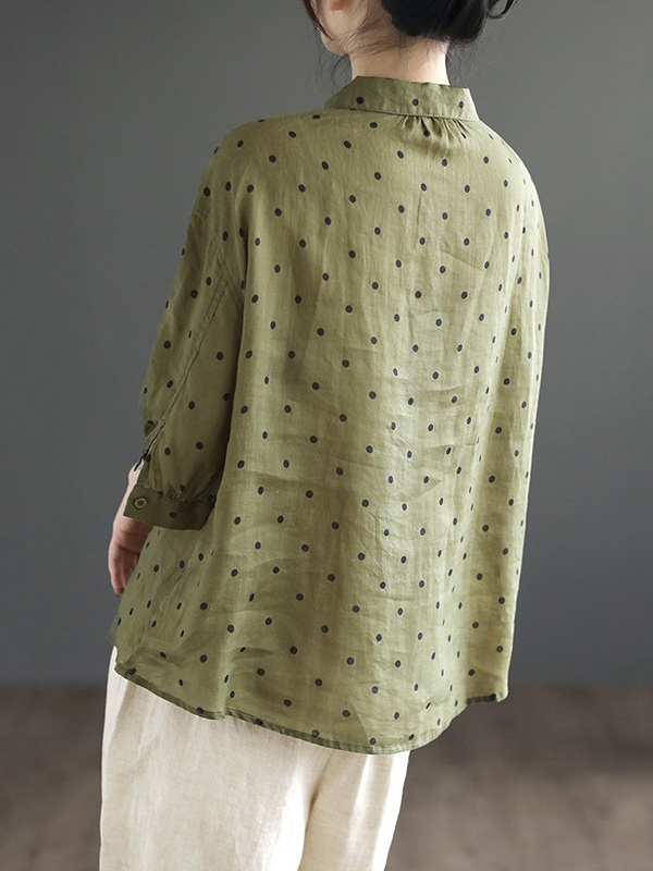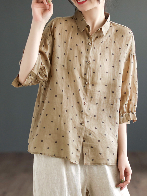 Half Sleeves Loose Polka-Dot Lapel Blouses&Shirts Tops