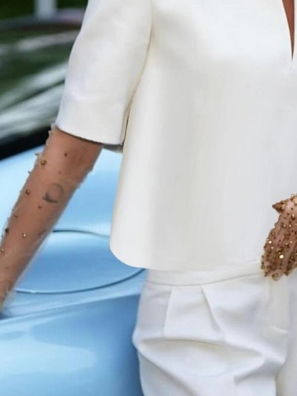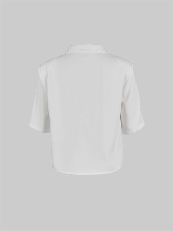 Half Sleeves Loose Solid Color Split-Joint Stand Collar Blouses&Shirts Tops