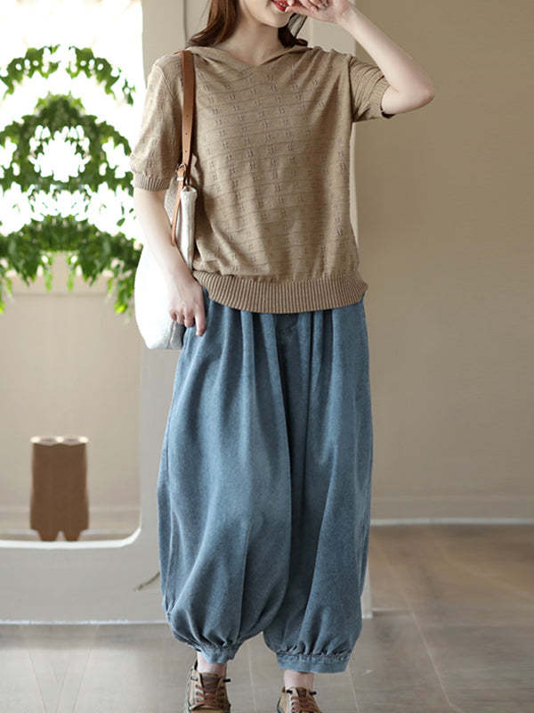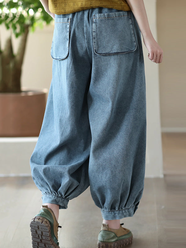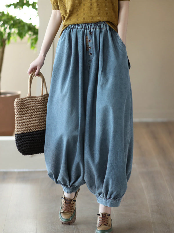 Harem Pants Loose Buttoned Elasticity Jean Pants Bottoms