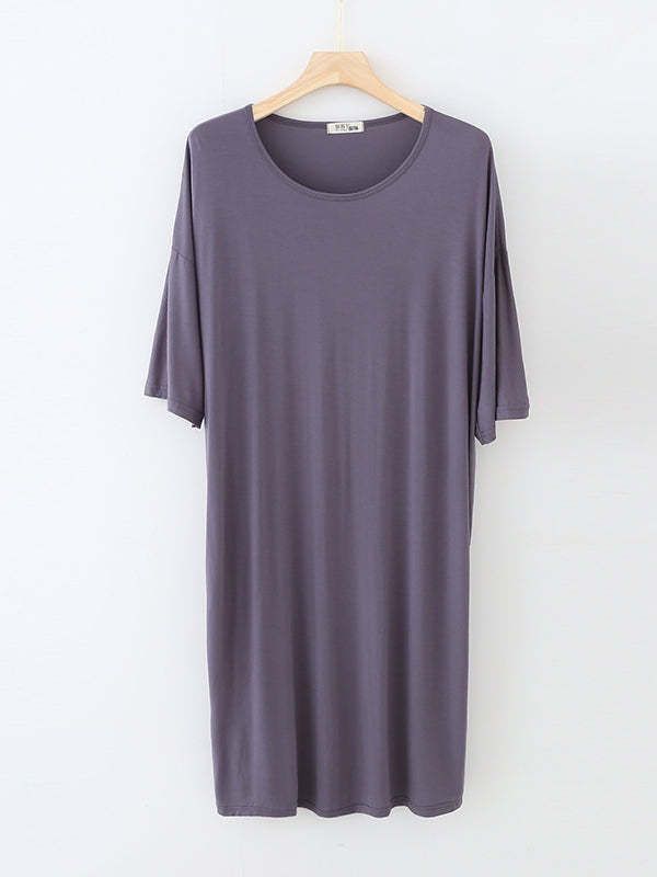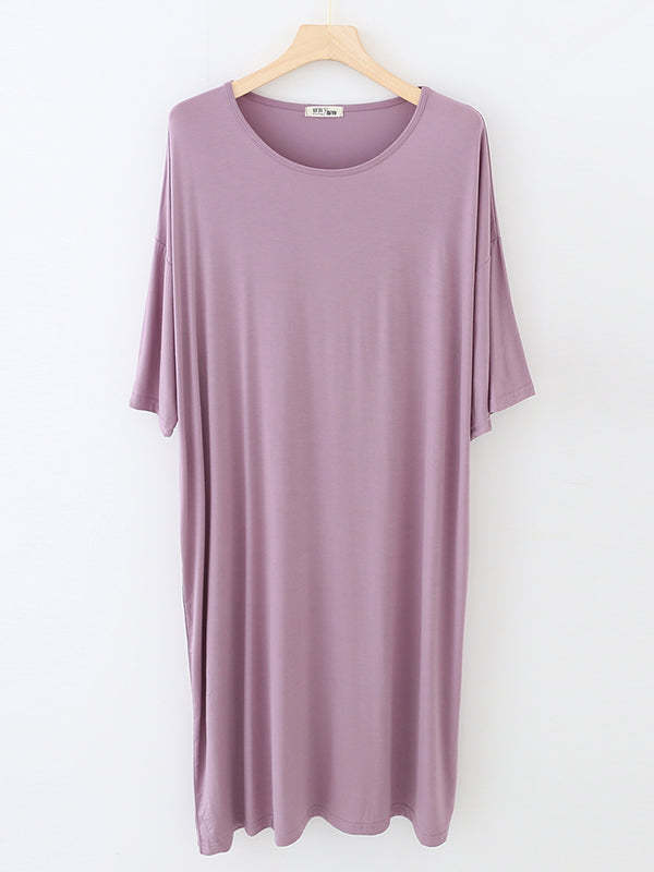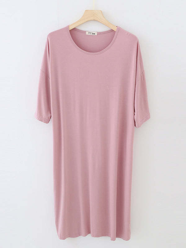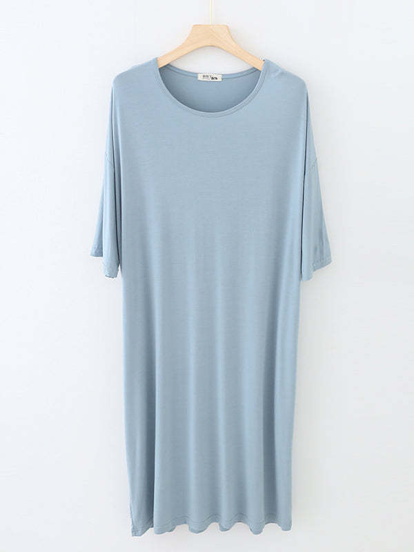 High Waisted Loose Solid Color Split-Joint Round-Neck Pajama Dress