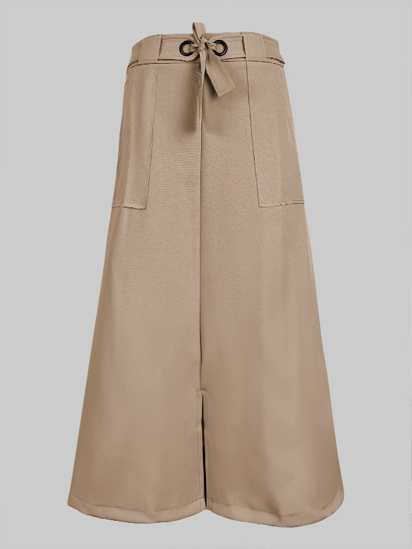 High Waisted Loose Split-Front Split-Joint Tied Waist Skirts