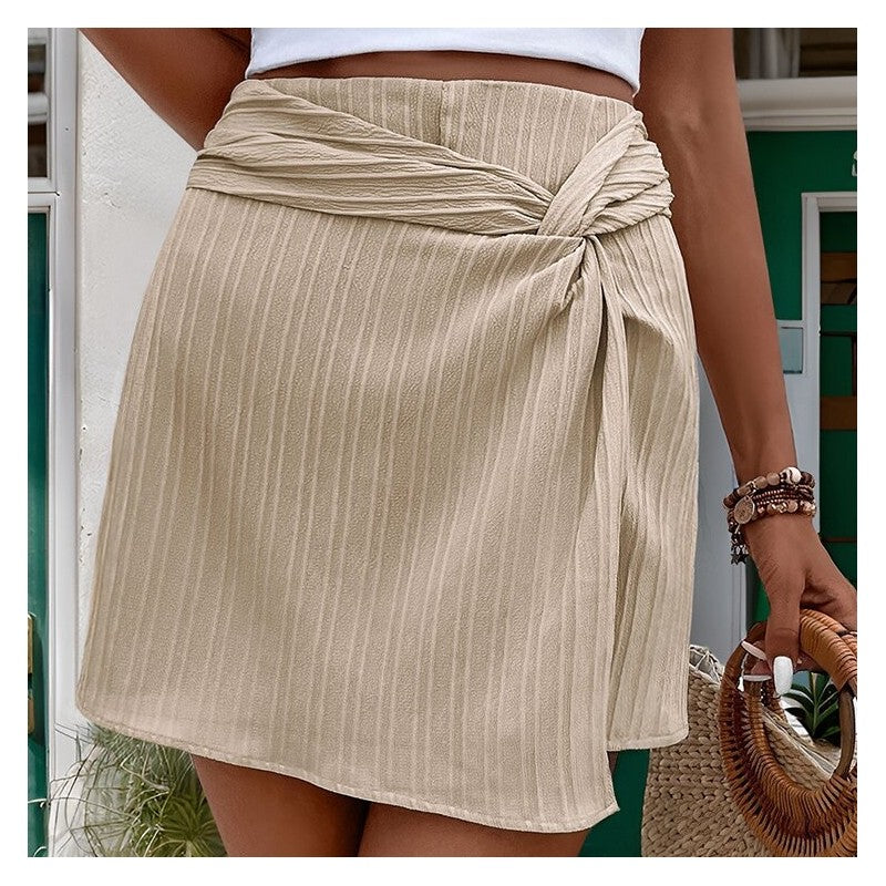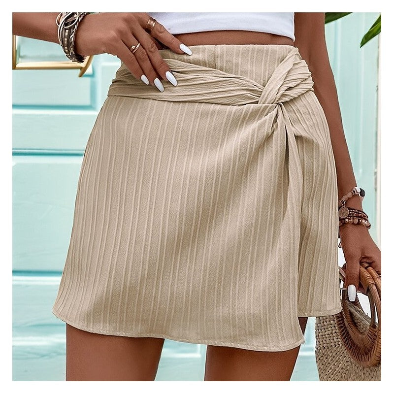 Elevate your wardrobe with our High-Waisted Solid Color Textured Knot Skirt Pants. These stylish bottoms feature a flattering high-waist design and a unique textured knot detail for added flair. Perfect for dressing up or down, these versatile pants are a must-have for any fashion-forward individual