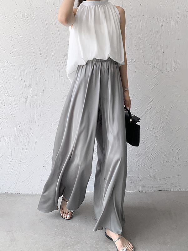 High Waisted Wide Leg Solid Color Casual Pants Bottoms Culotte