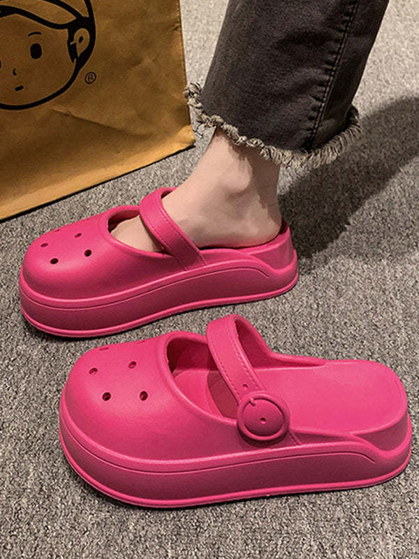 Hollow Round-Toe Solid Color Sandals Slippers