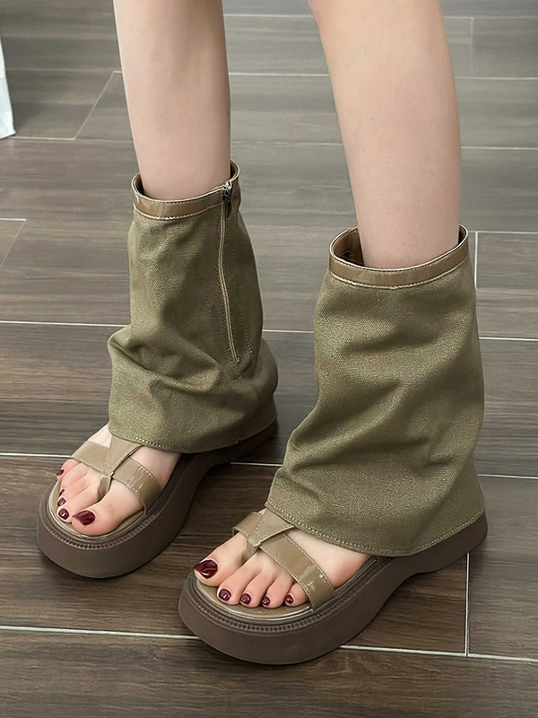 Hollow Split-Joint Split-Toe Zipper Boots Platform Shoes Sandals
