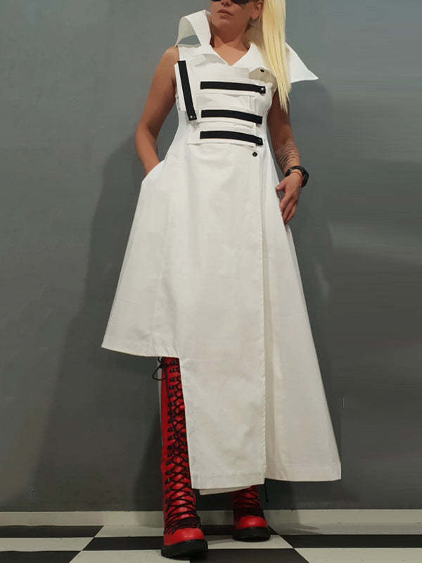 Irregular Clipping Loose Buttoned Split-Joint Lapel Maxi Dresses Shirt Dress