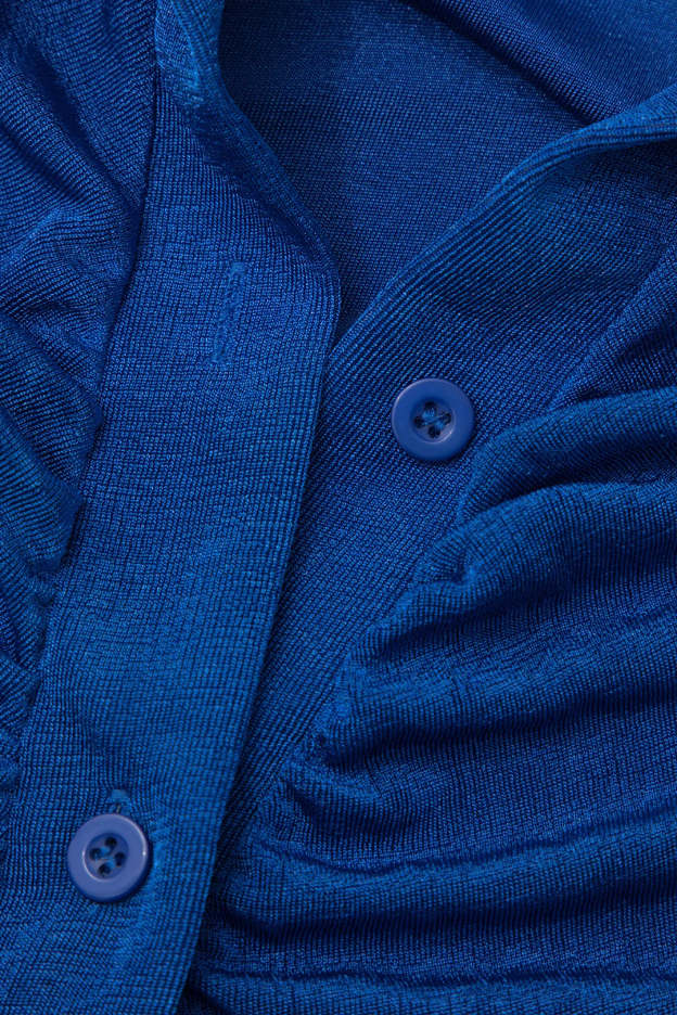 Kava Blue Ruched Button Up Collar Midi Dress