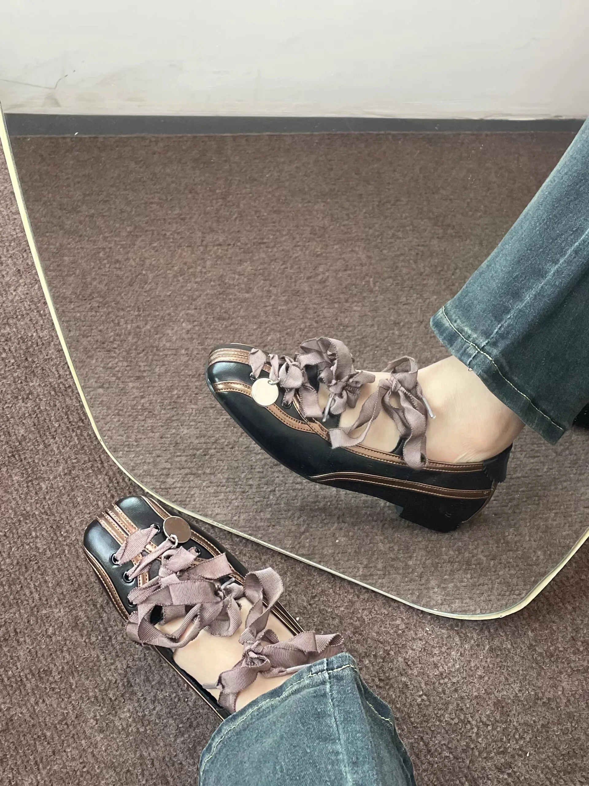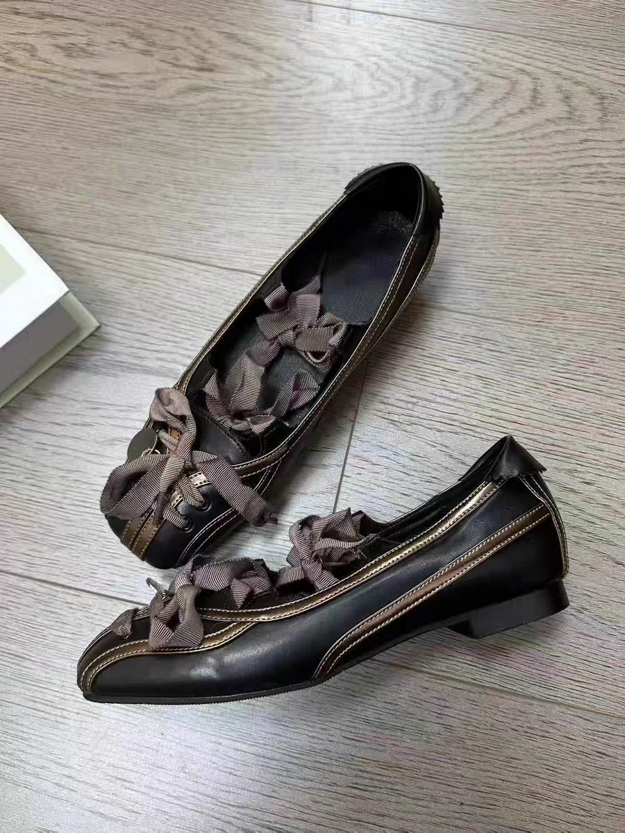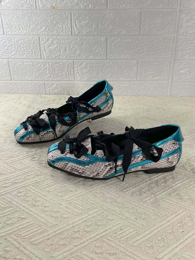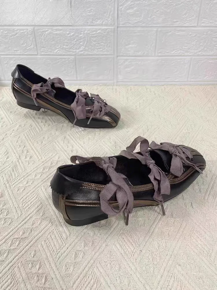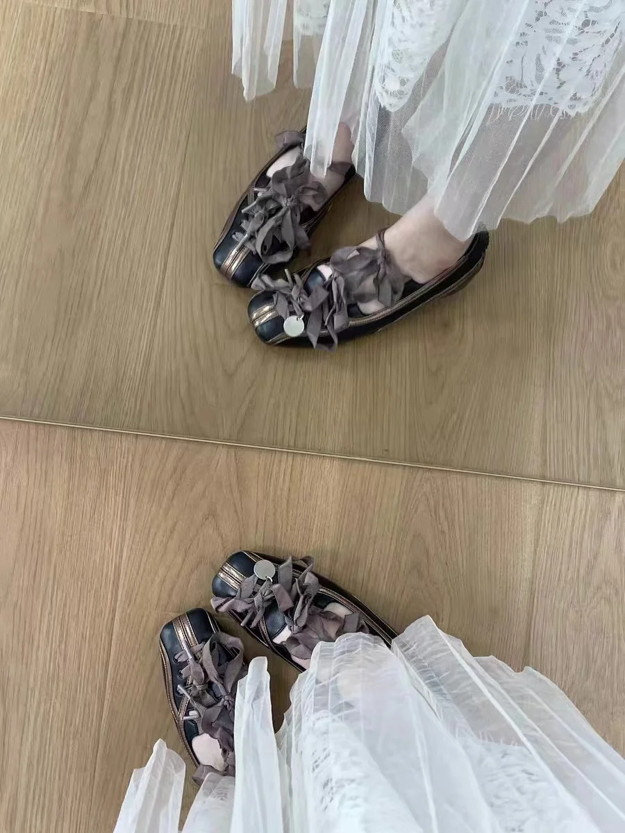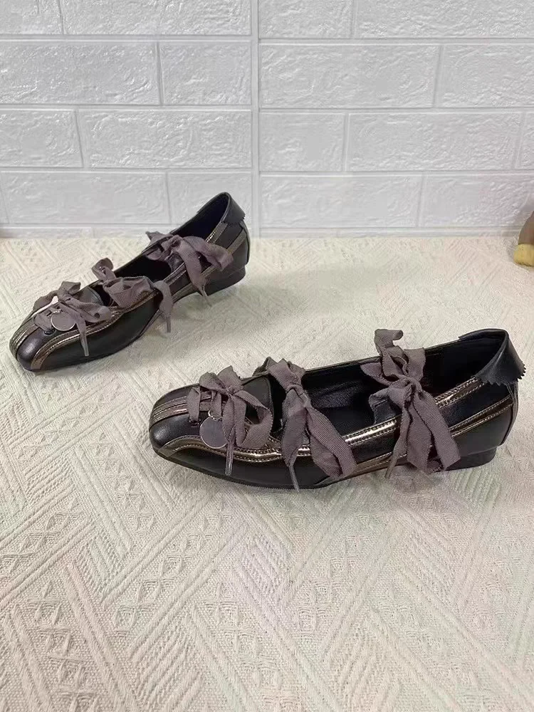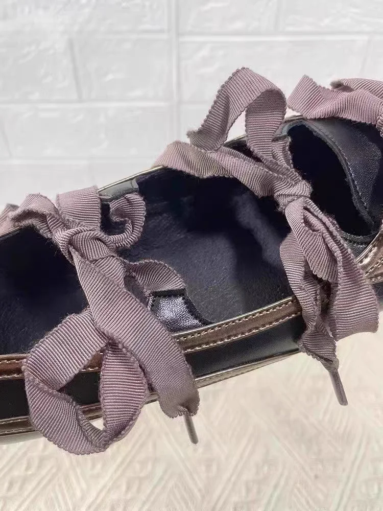 KYLETHOMASW - Ballet Flats for Women Strappy Bowling Shoes Ballerina Flats Bowknot Square Closed Toe Comfortable Low Heel Flats Casual Shoes