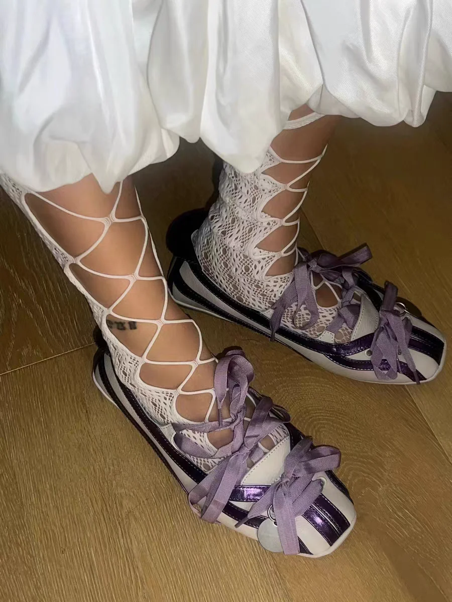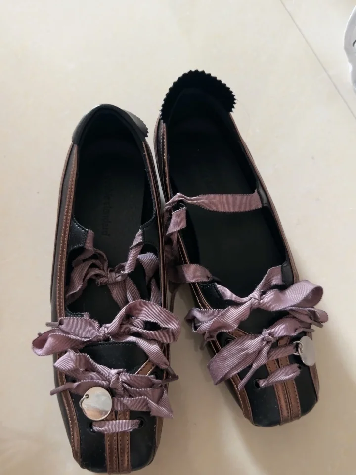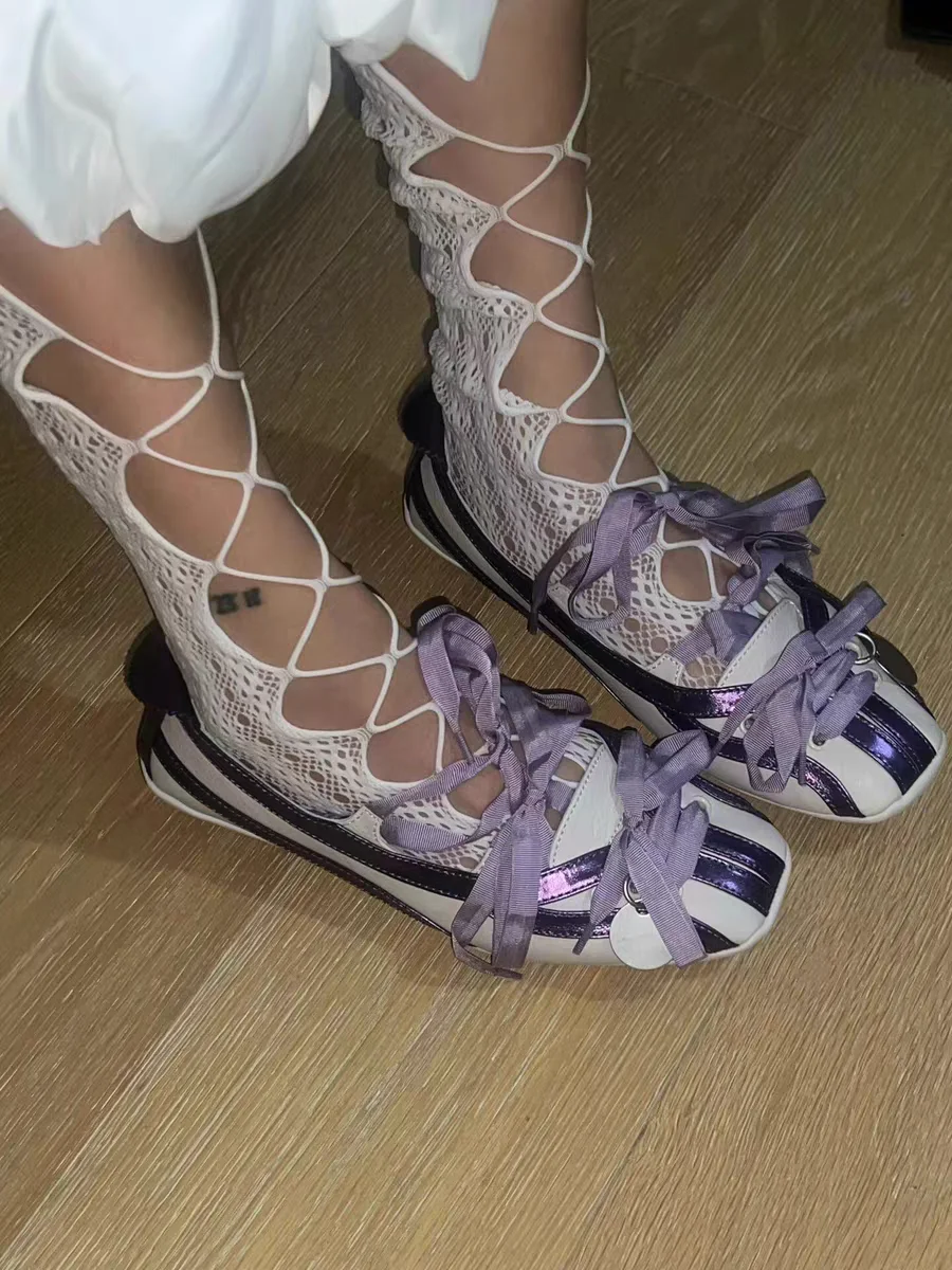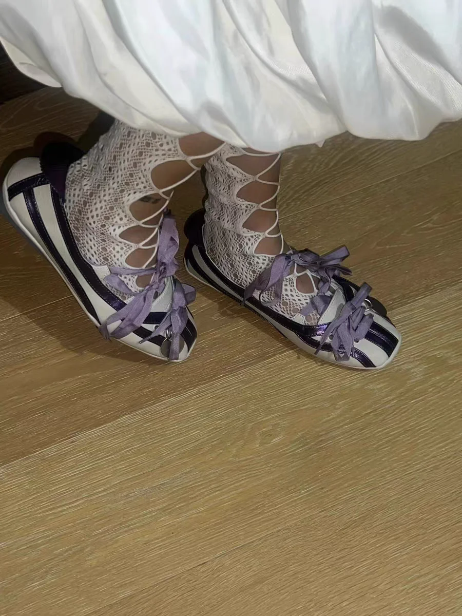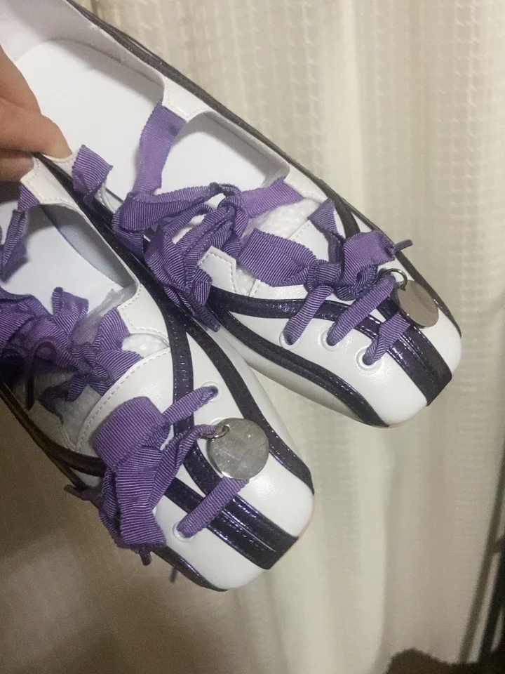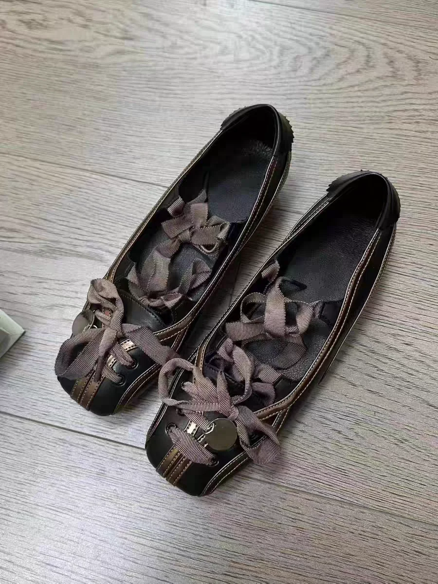 KYLETHOMASW - Ballet Flats for Women Strappy Bowling Shoes Ballerina Flats Bowknot Square Closed Toe Comfortable Low Heel Flats Casual Shoes
