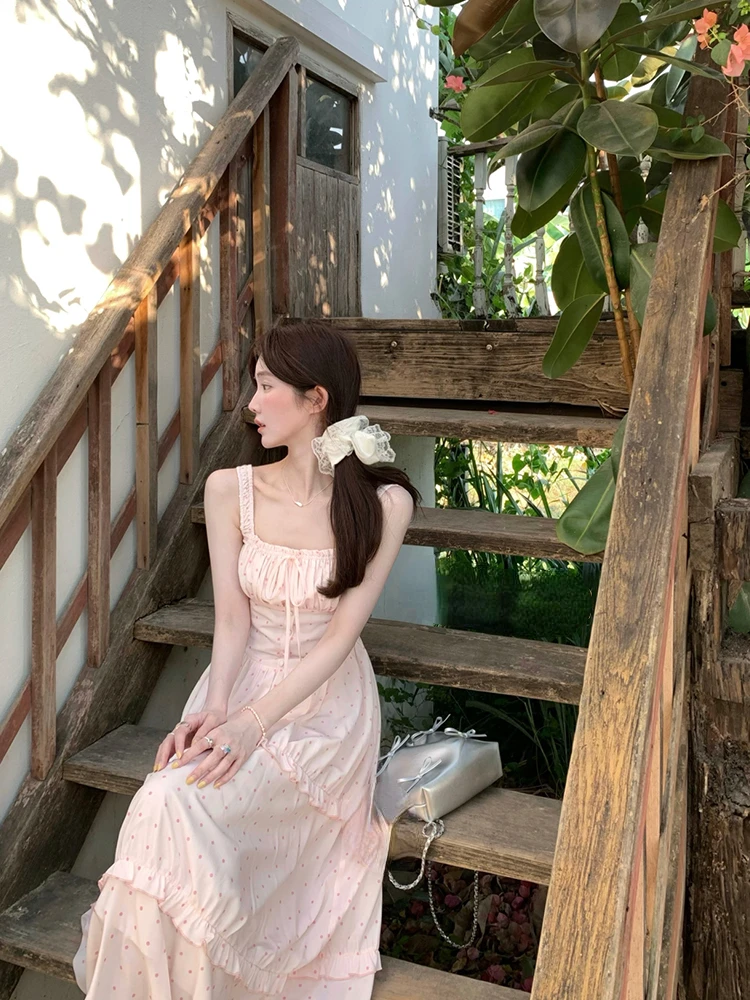 Casual Elegant Floral Dress Women Korean Fashion Clothing Outwear Beach Style Strap Dress Even Party Sleeveless Bodycon Summer