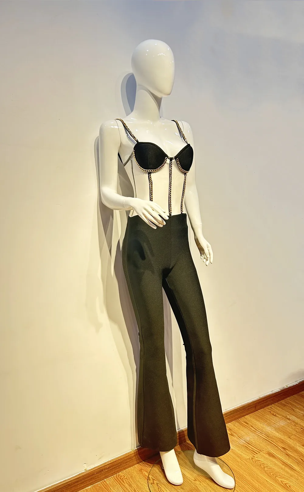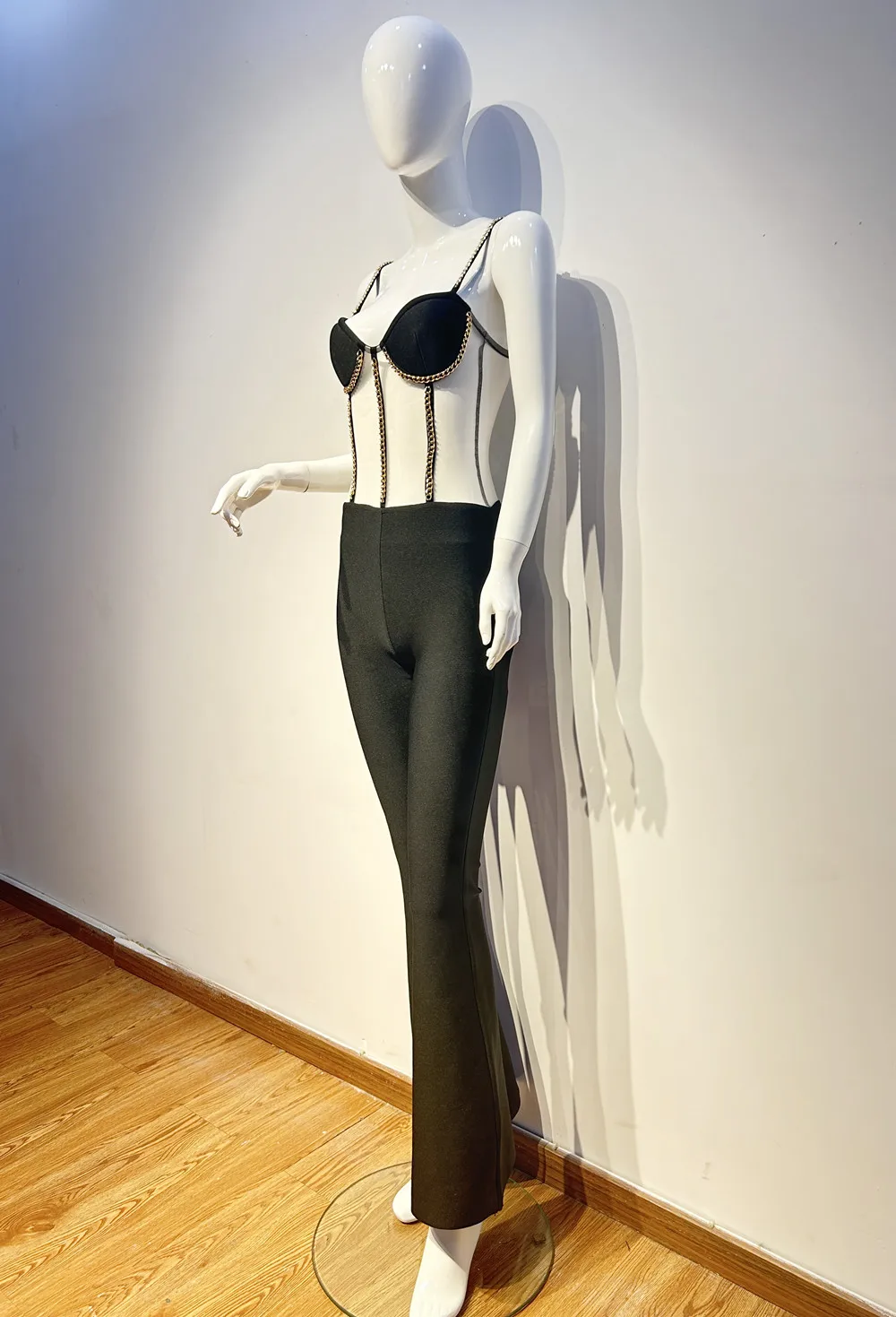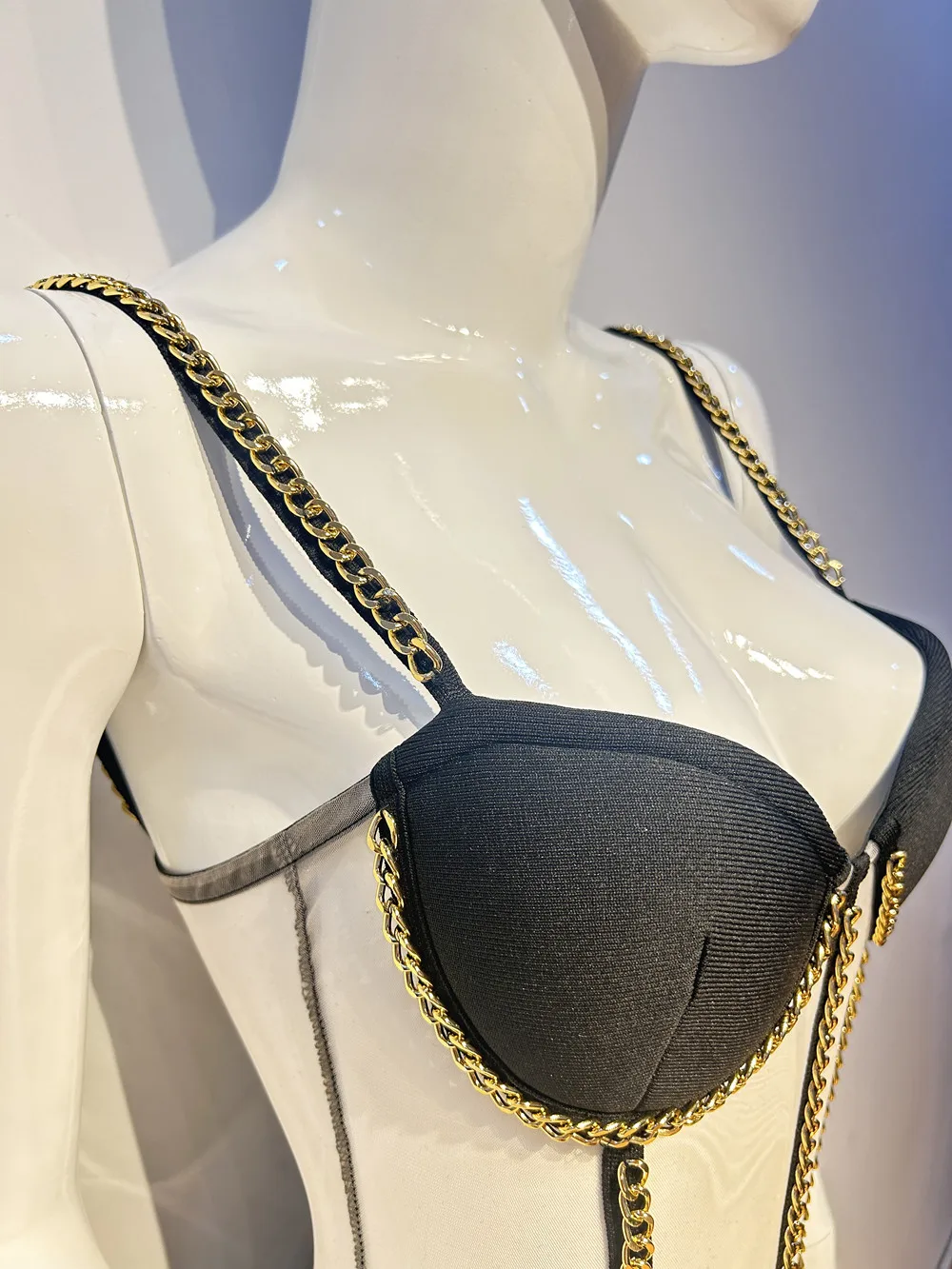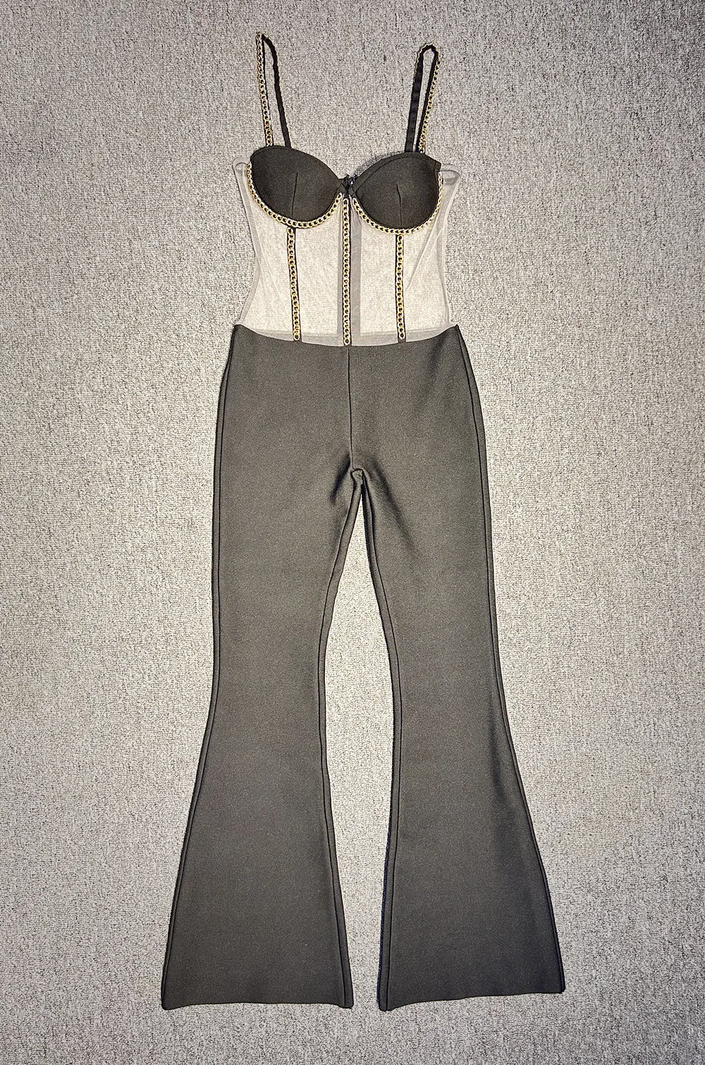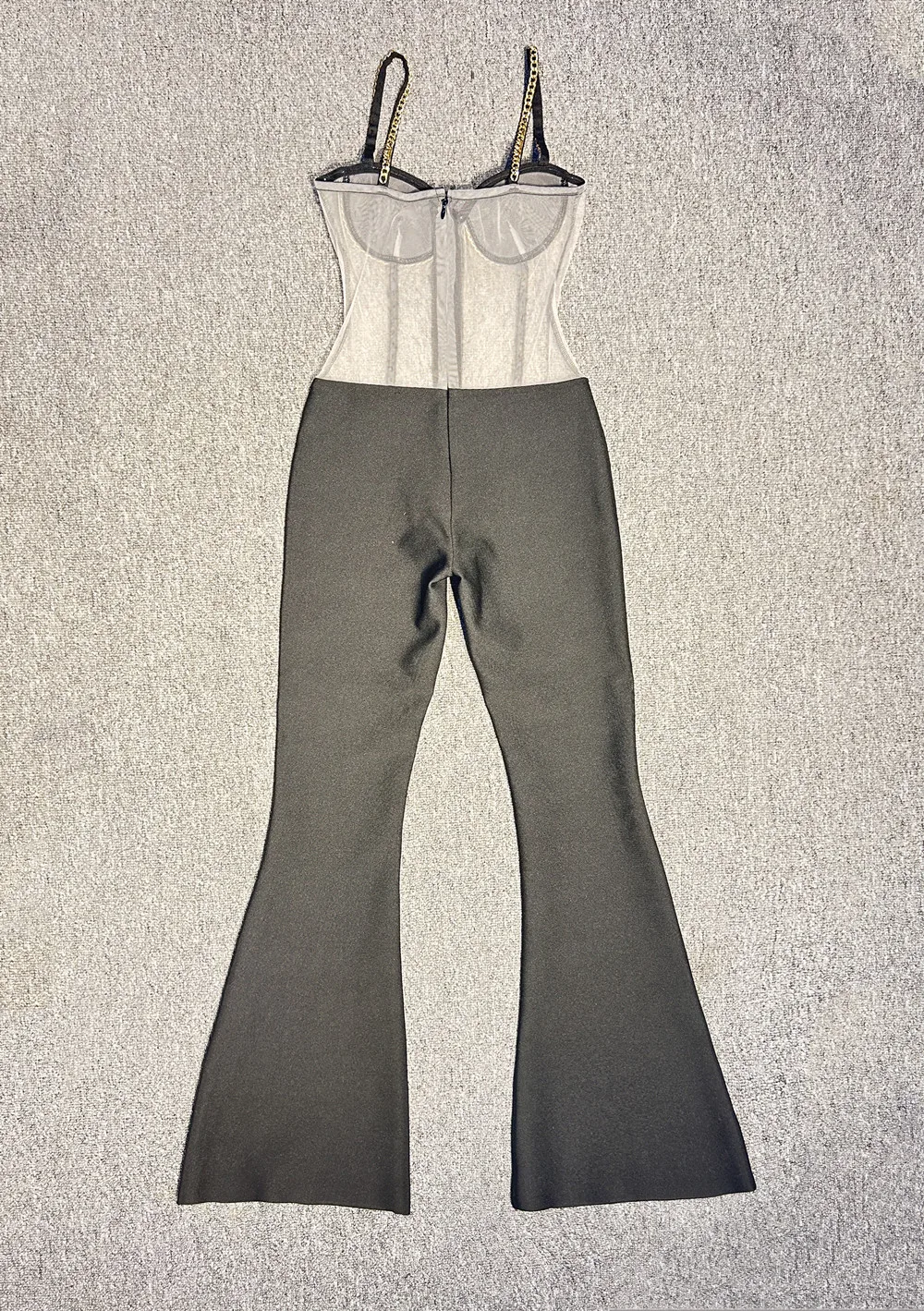 Kylethomasw Chic Women Luxury Sexy Sleeveless Mesh Chain Black Bodycon Bandage Jumpsuit 2024 Celebrity Designer High Street Rompers
