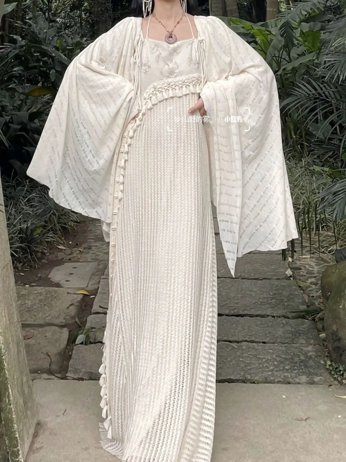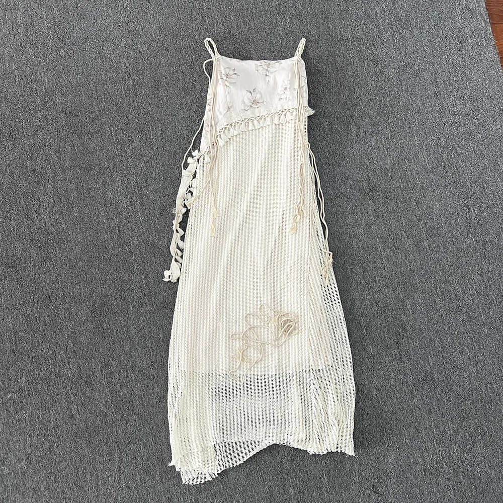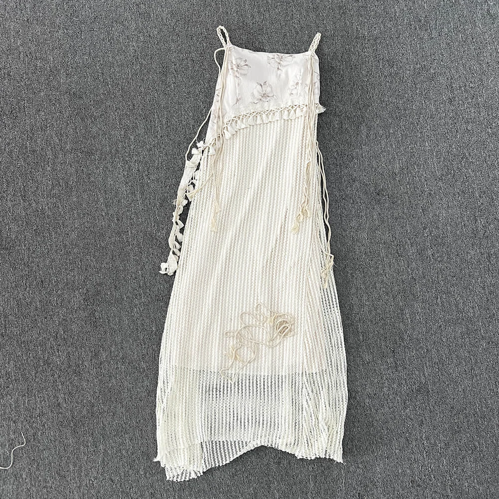 Chinese Style Knitted Spliced Suspender Dress Spring and Autumn Long Sleeve Coat Vintage Dress Set Two Piece Sets Women Outfits