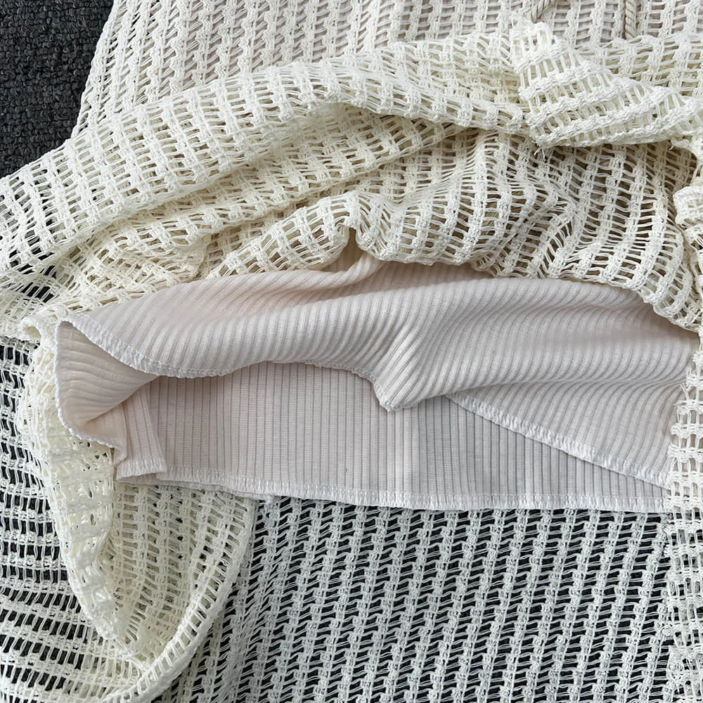 KYLETHOMASW - Chinese Style Knitted Spliced Suspender Dress Spring and Autumn Long Sleeve Coat Vintage Dress Set Two Piece Sets Women Outfits