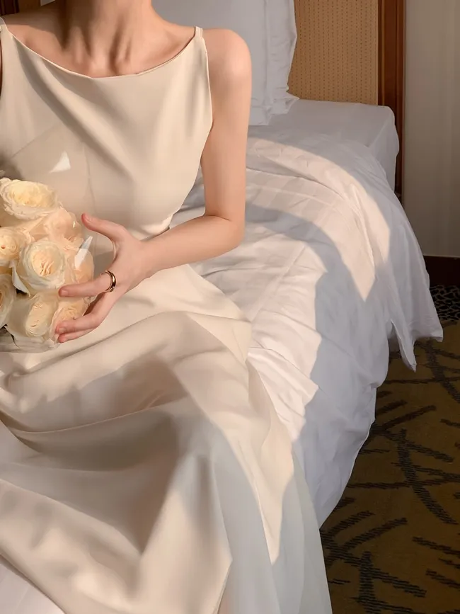 KYLETHOMASW - Elegant Spaghetti Straps Champagne Wedding Guest Dress Spring Summer Casual A-line Midi Dresses Evening Party Korea Vestido Muje