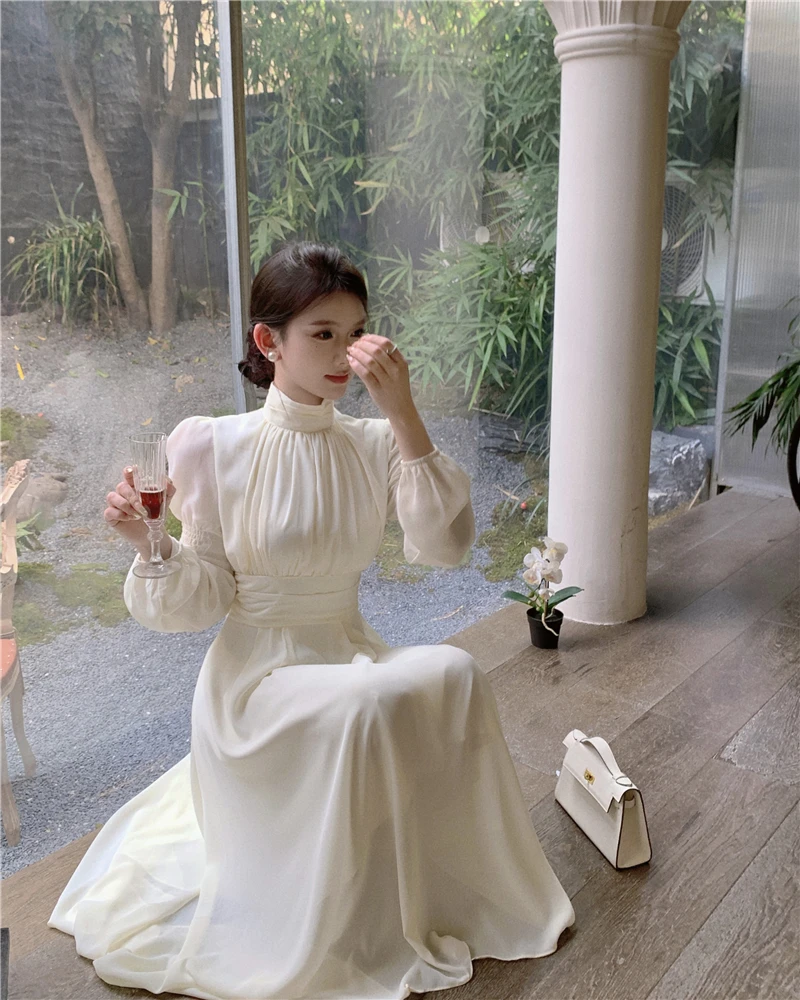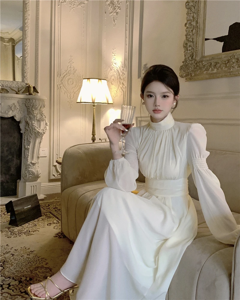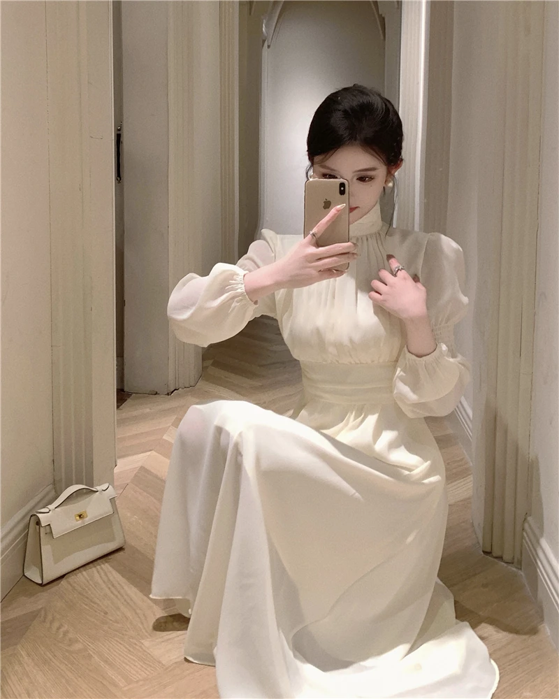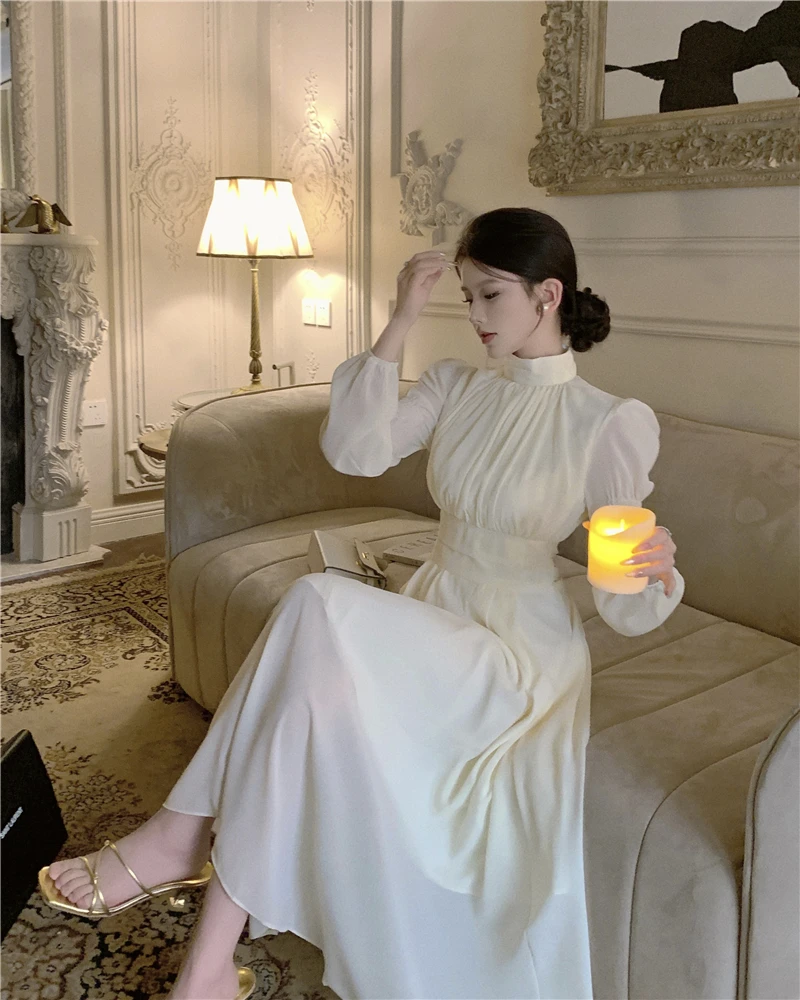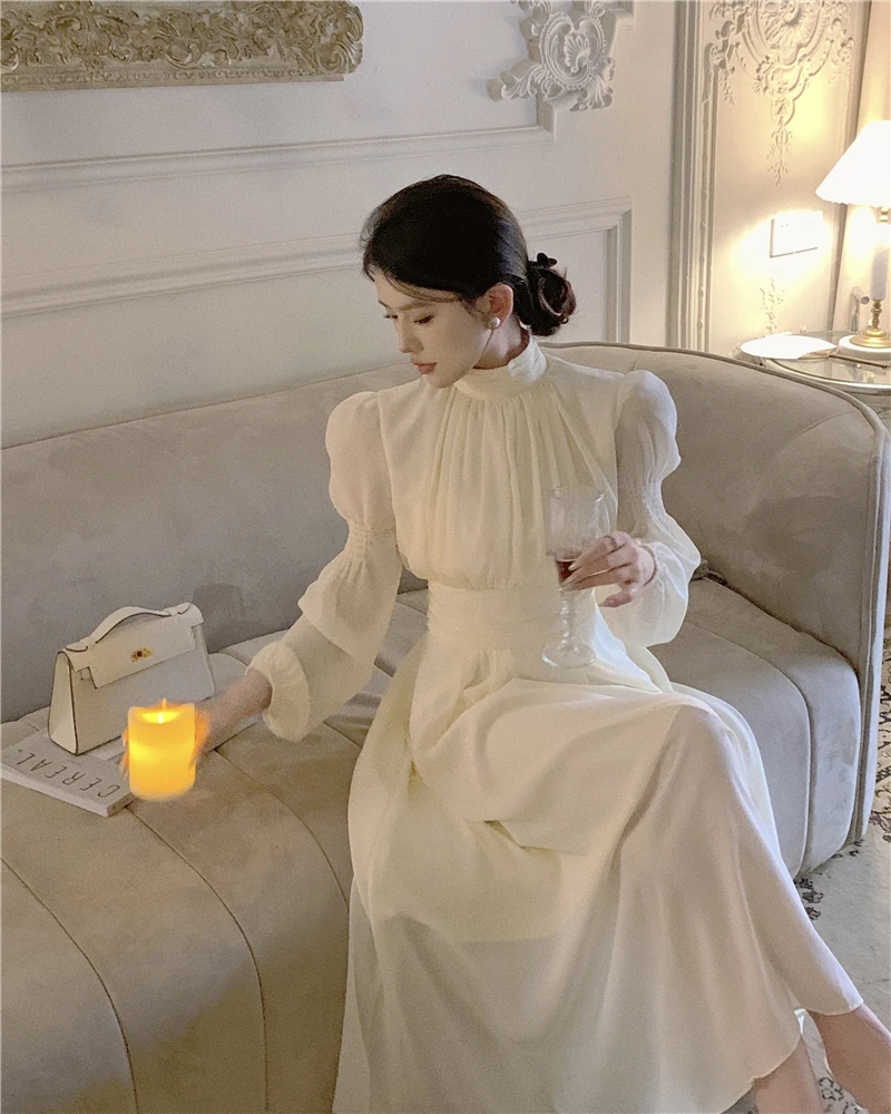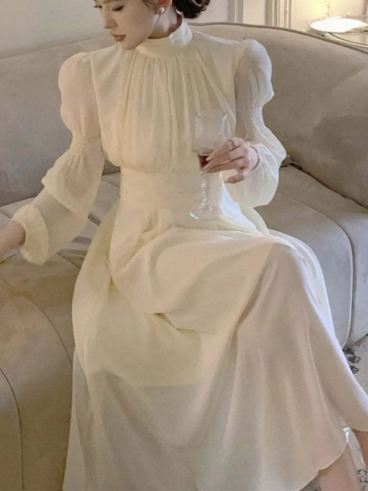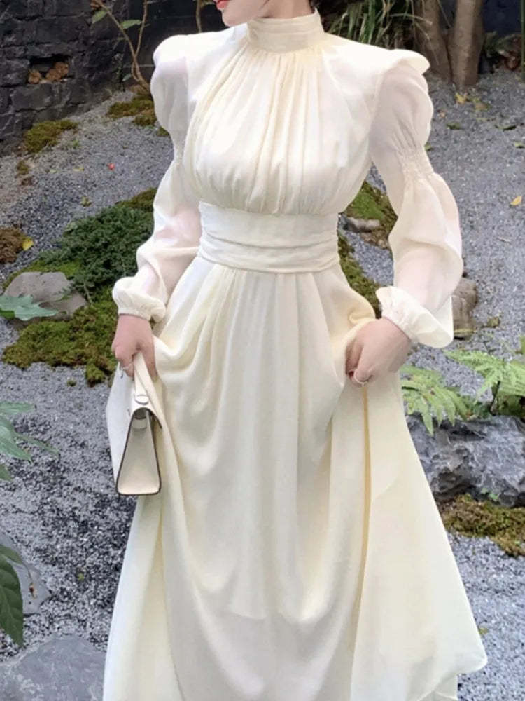 KYLETHOMASW - Fashion New Women Elegant Casual Long Dress Autumn Vintage A-Line Solid Party Birthday Dresses Female Clothes Robe Vestidos