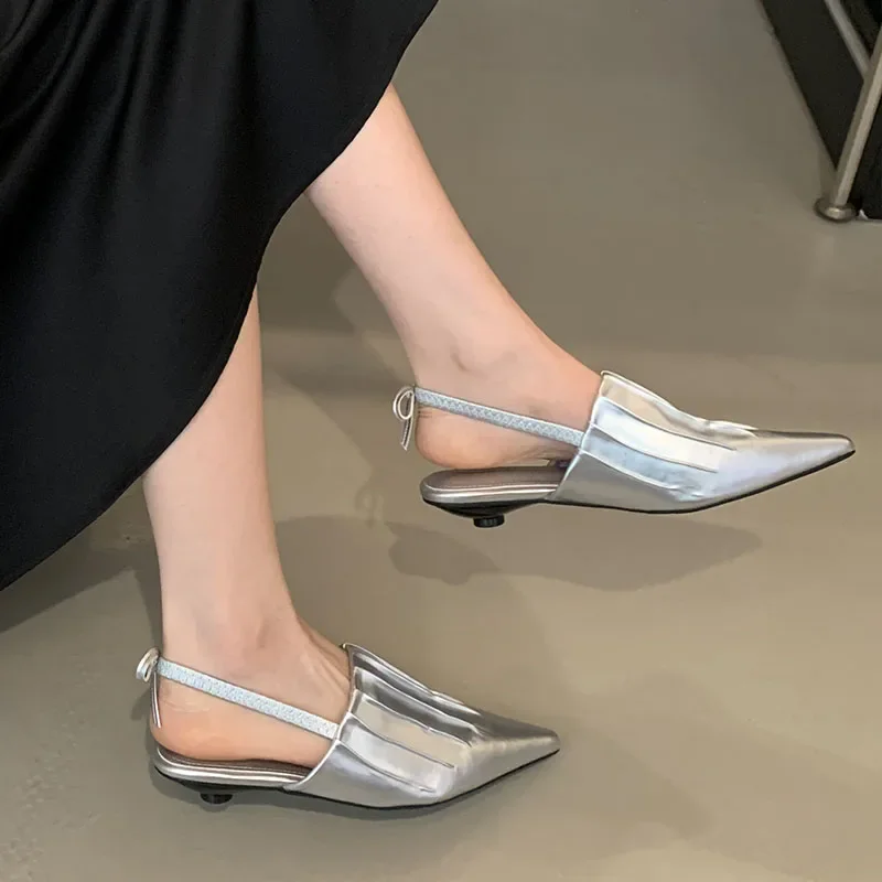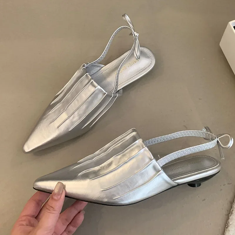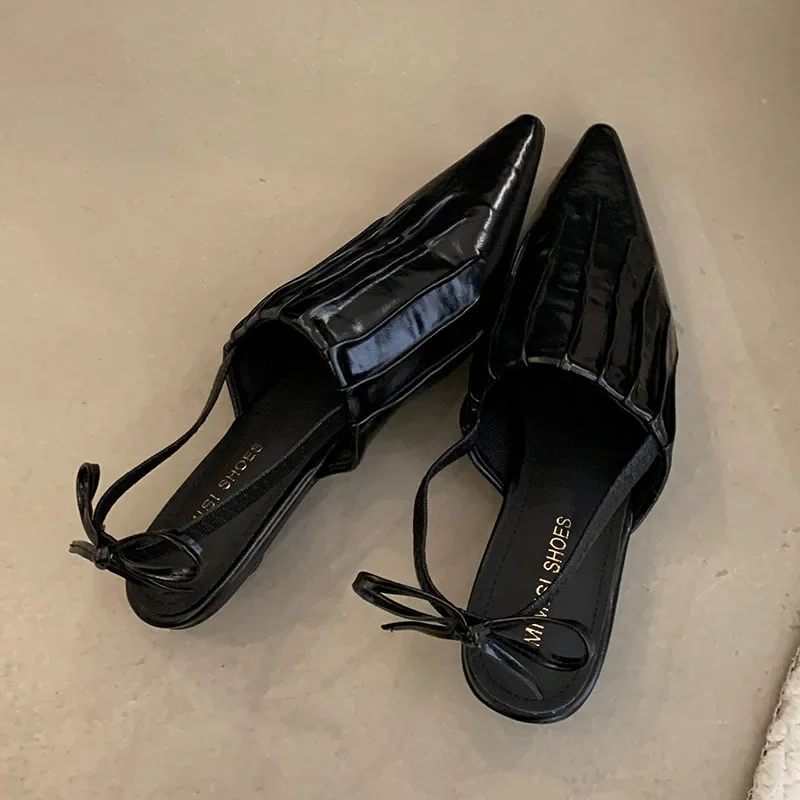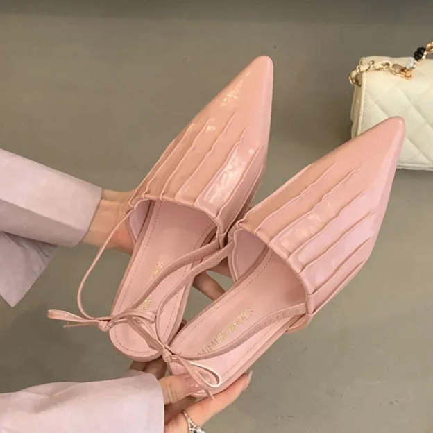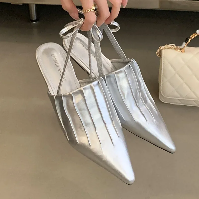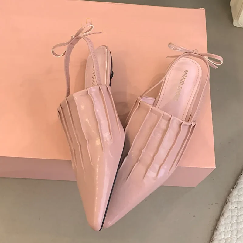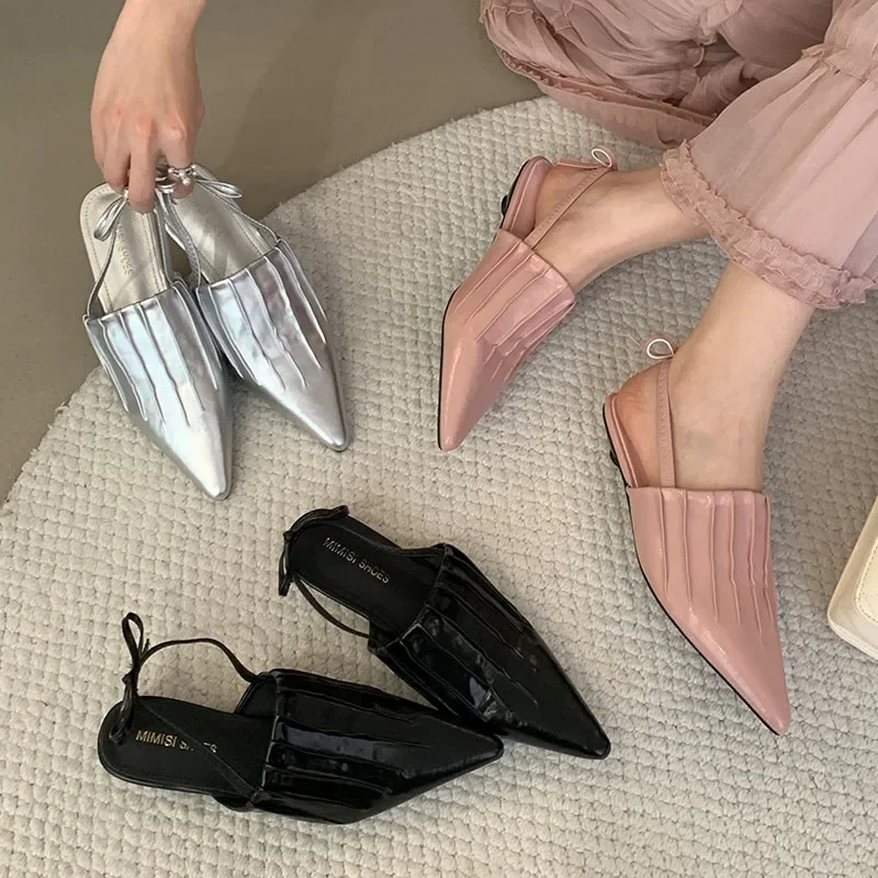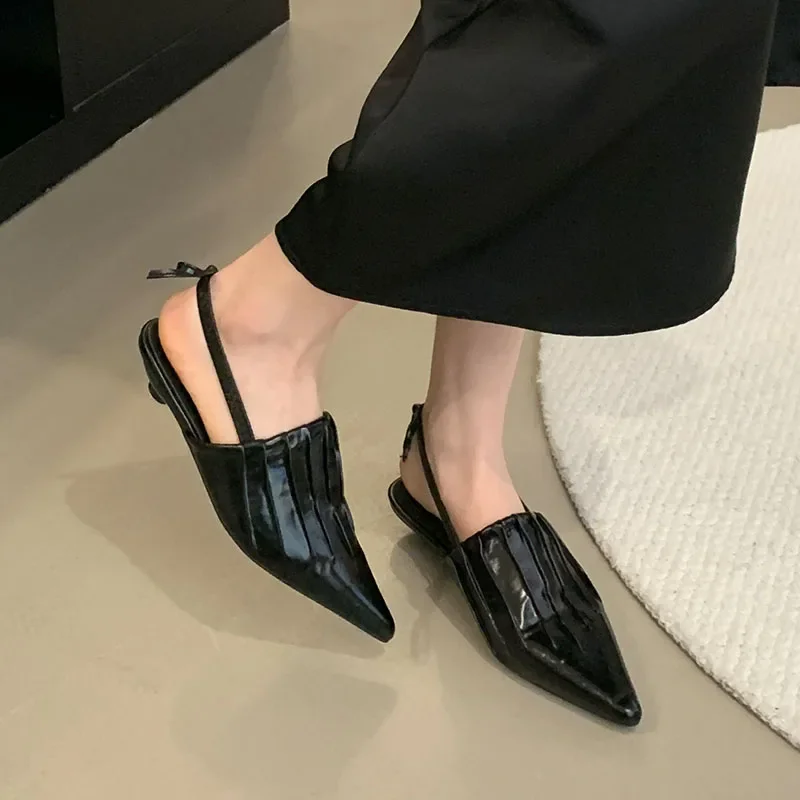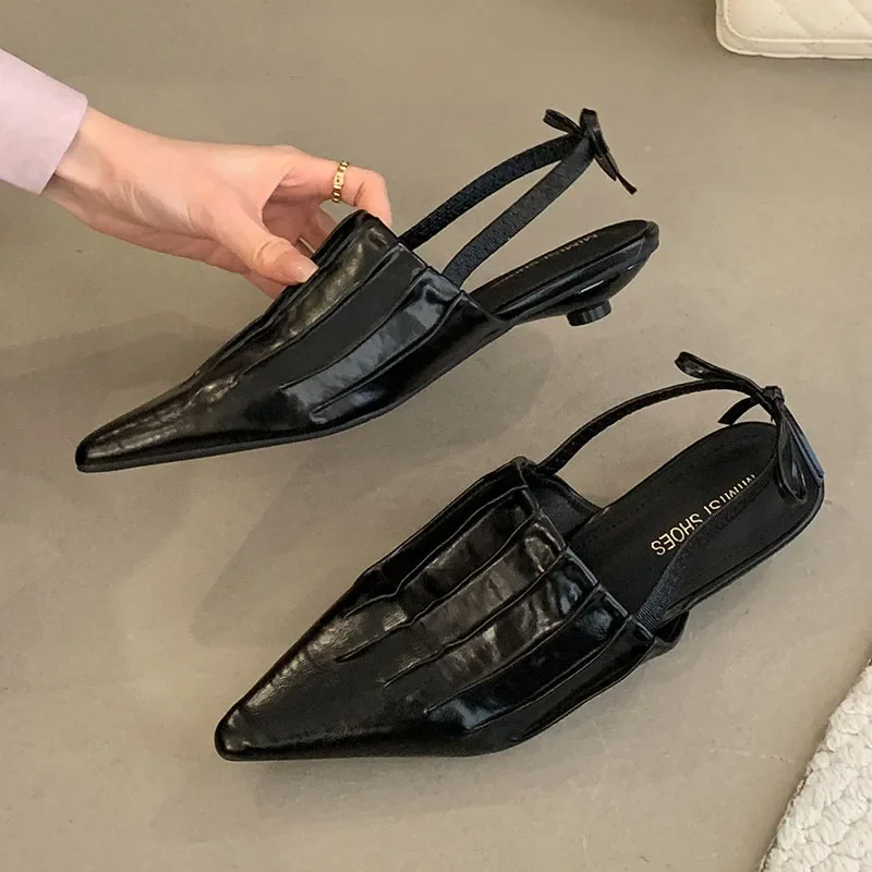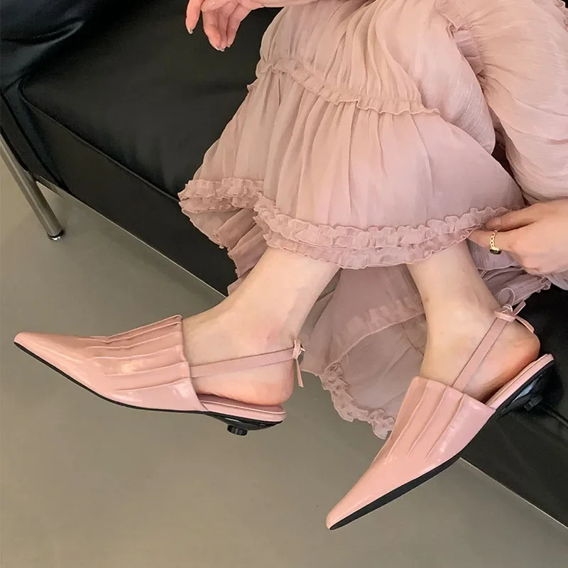 KYLETHOMASW - Fashion Pointed Pleated Low Heel Shallow Slingback Women Shoes New 2025 Brand Designer Sexy Lace Office Elegant Women Mule Shoes